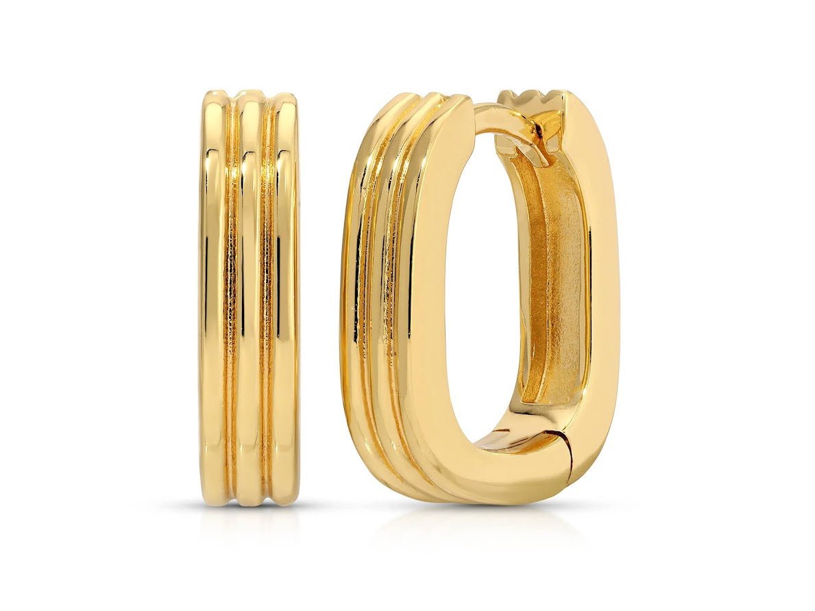 Gold Square Ridged Hoop Earrings