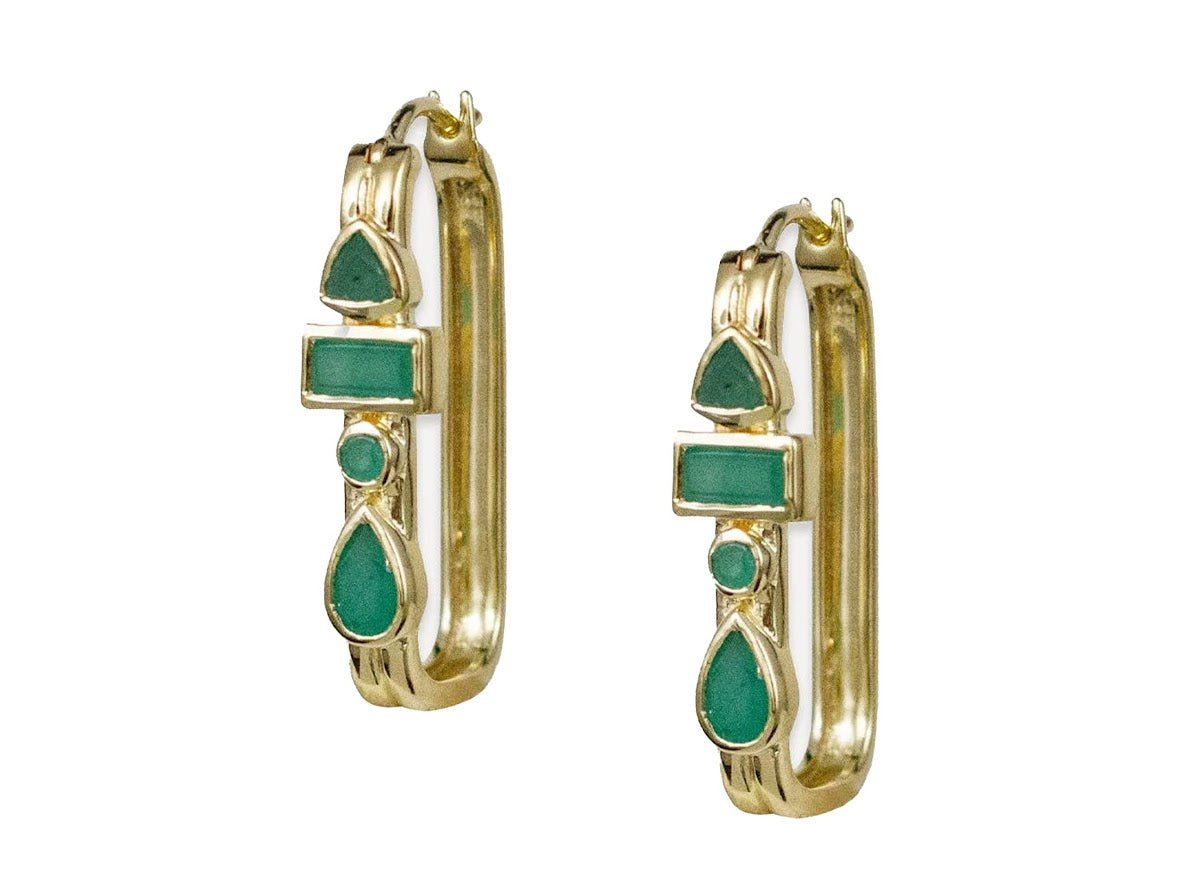 Gold and Emerald Elongated Rectangle Hoops
