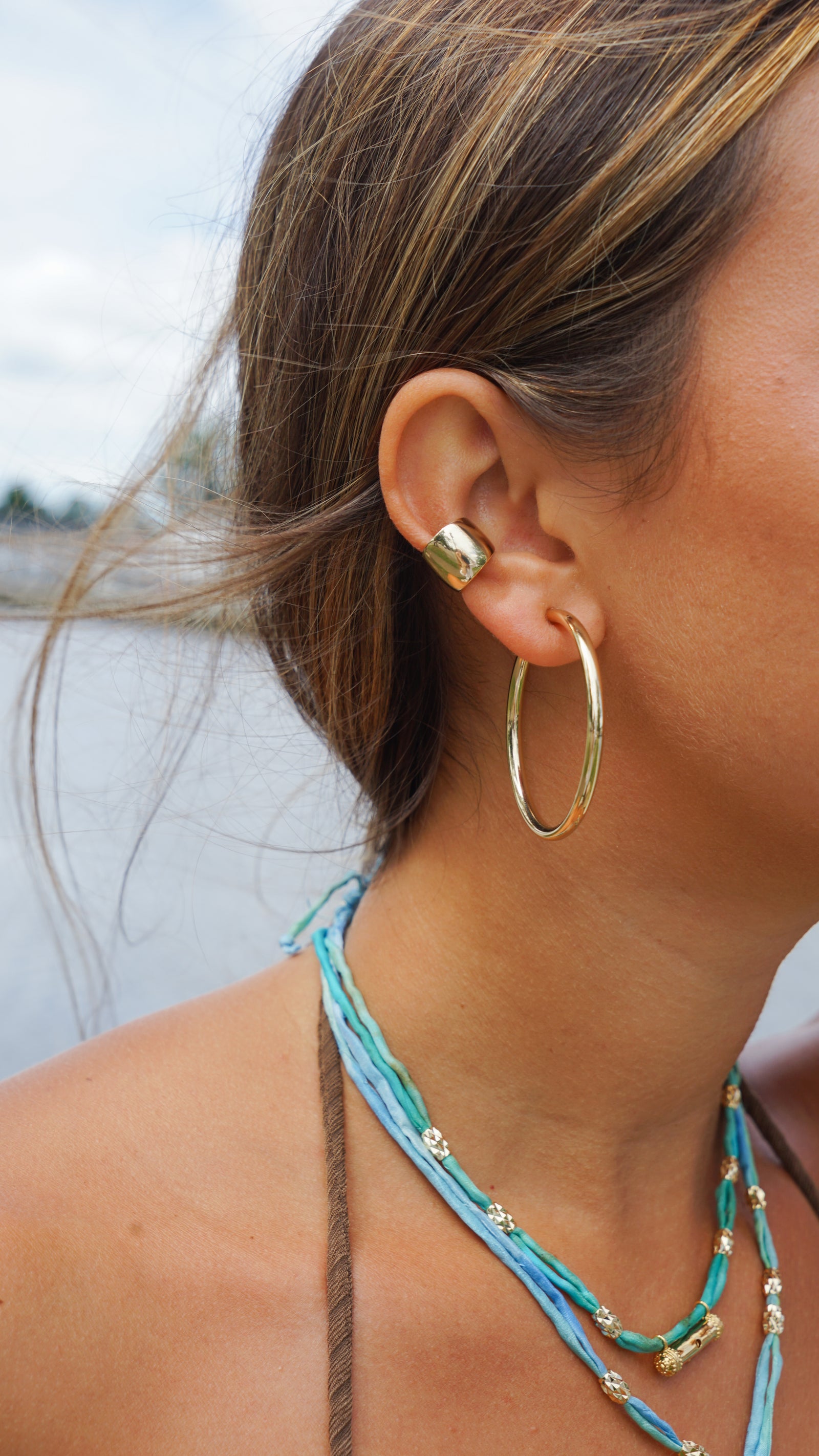Gold Large Hammered Hoops