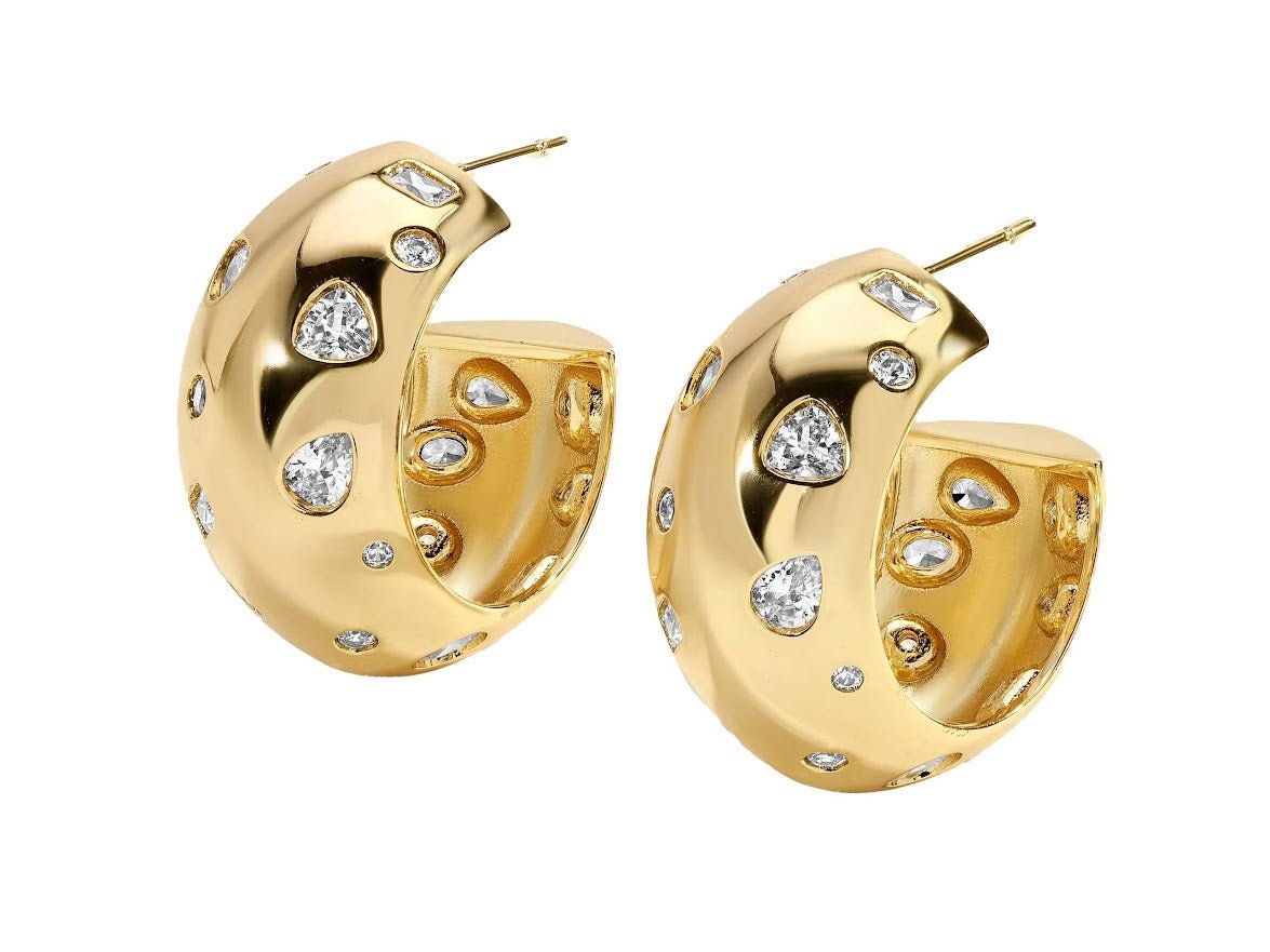 Gold Chunky Hoops with Various CZs