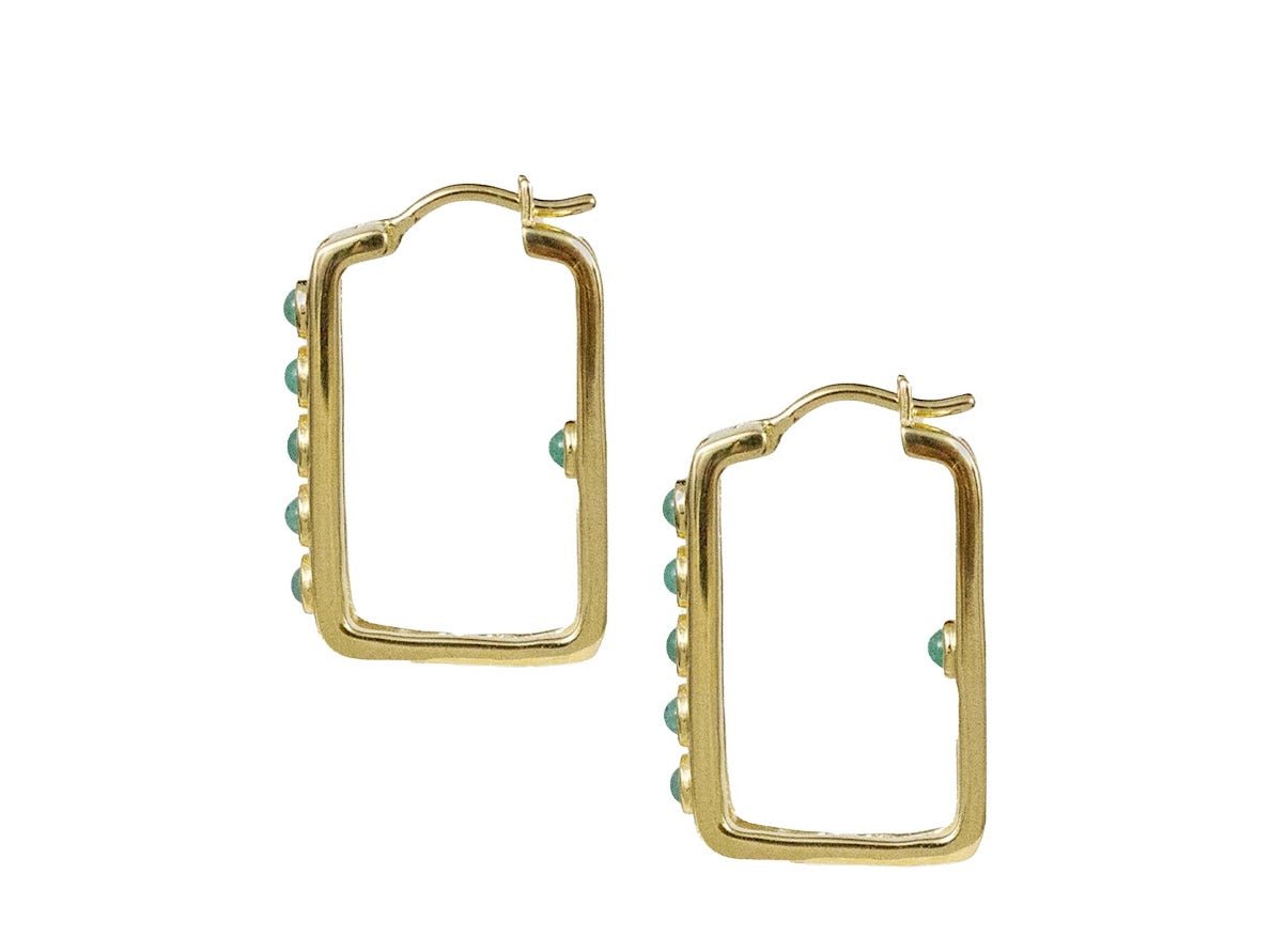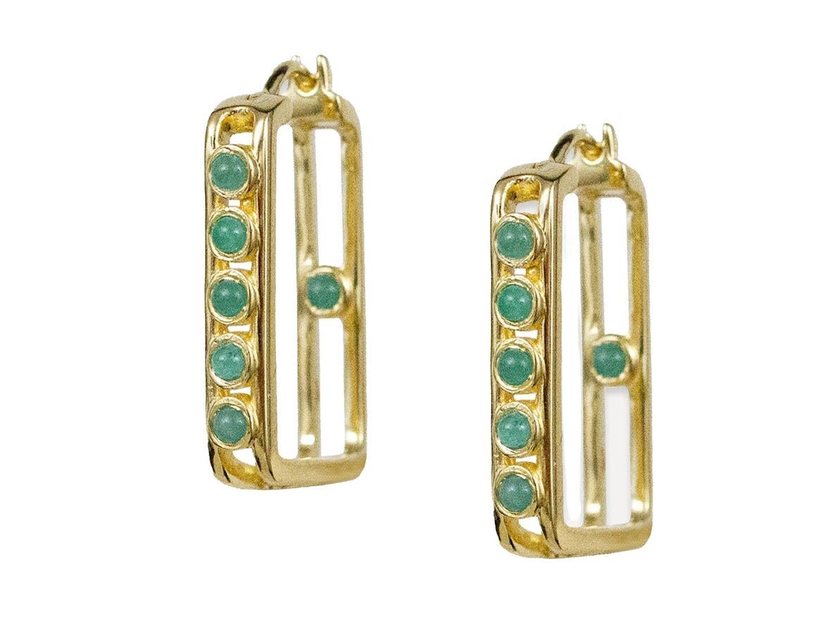 Gold and Emerald Elongated Square Hoops