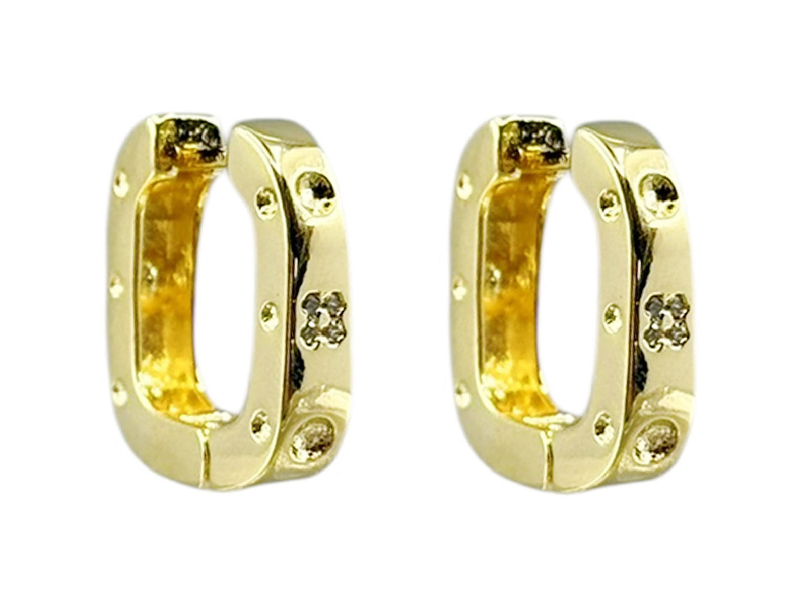 Gold Carabiner Hoop Earrings with CZs