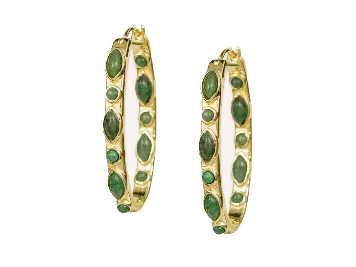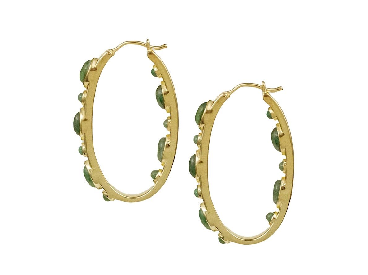 Gold and Emerald Oval Hoops