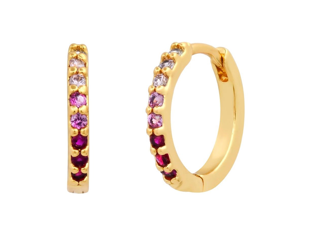 Gold Huggies with Ombre Green Pave CZs