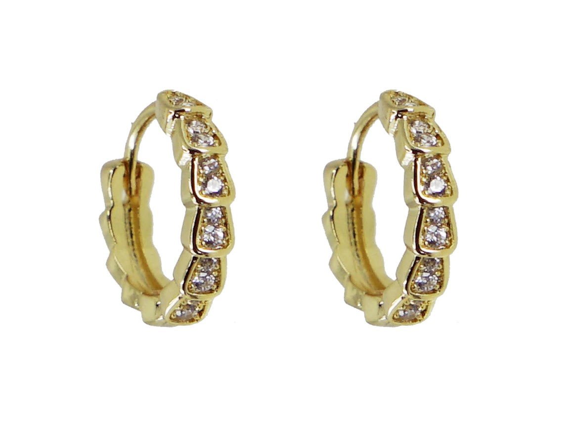 Gold Ridged Huggie Hoops with CZs
