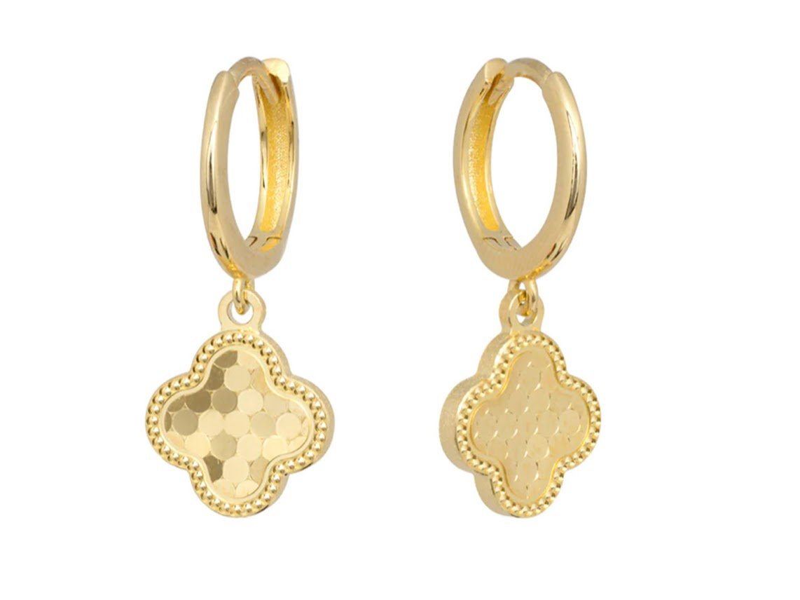 Gold Huggie Hoops with Clover Drops