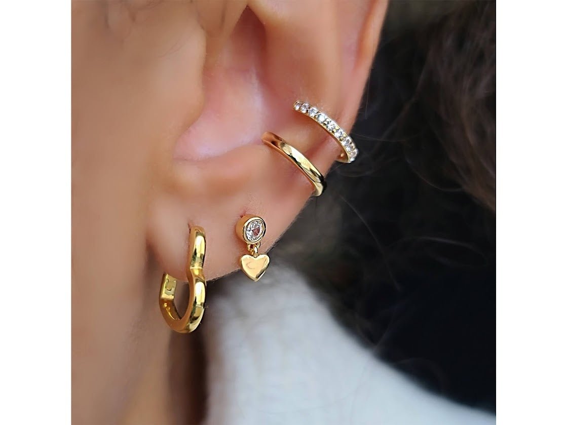 Gold Heart Huggie Hoops