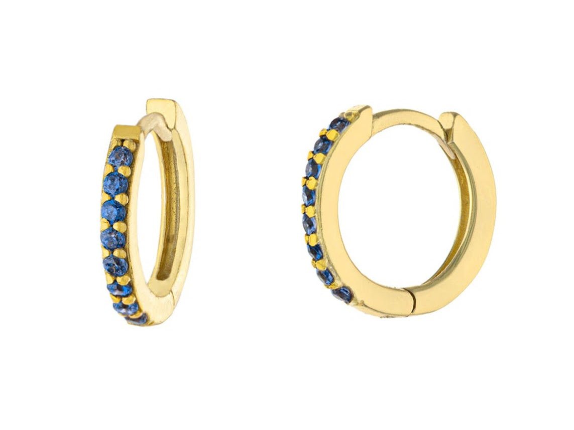 Gold Huggie Hoops with Blue CZs