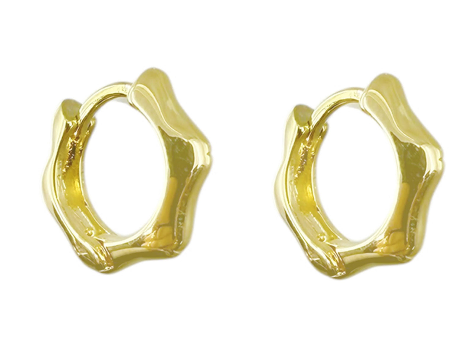 Emerald-cut cubic zirconia stones set in 18k gold-plated brass with a PVD coating.