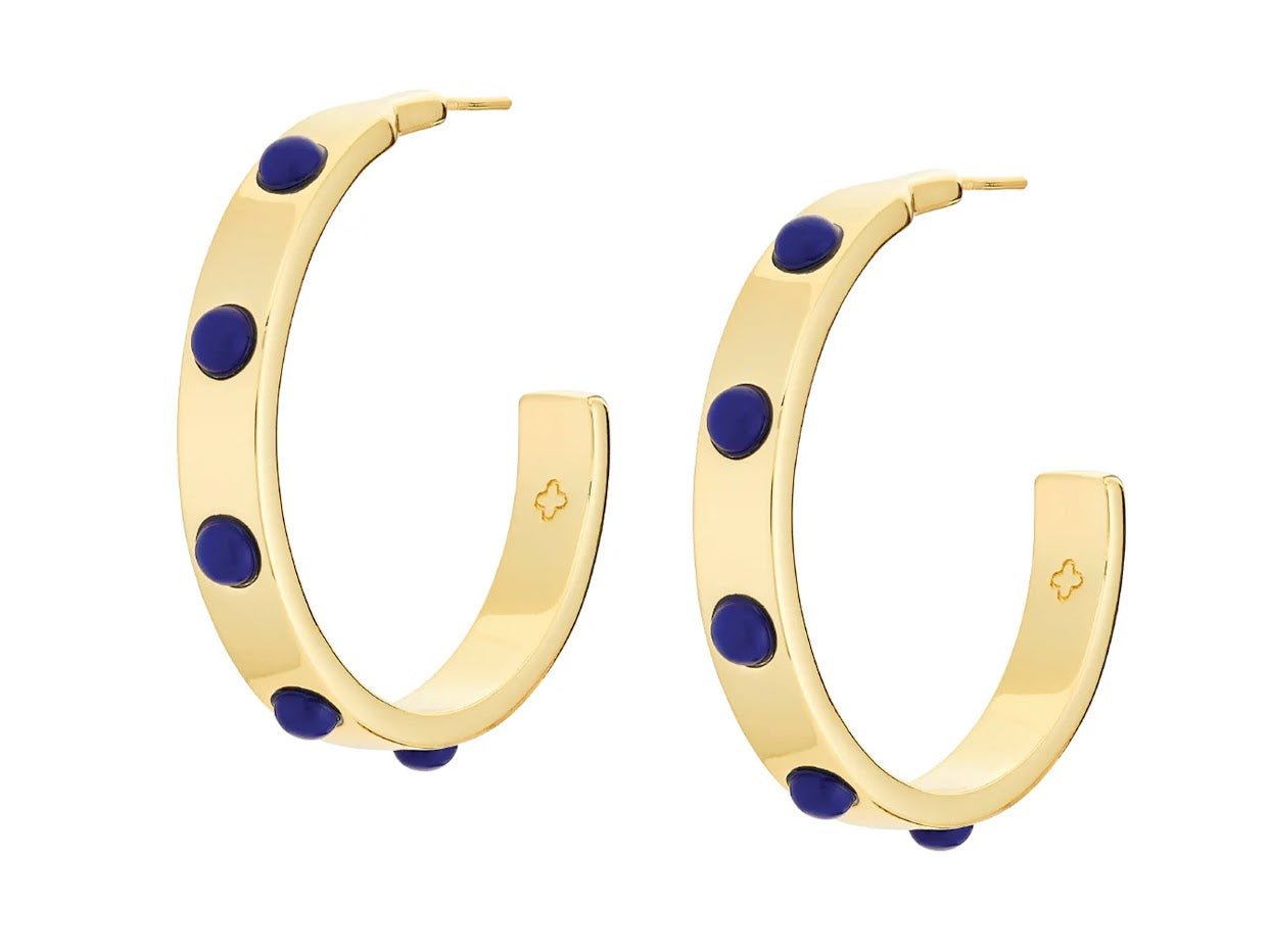 From Bunny Shapiro: These 14k gold-filled hoops are detailed with fine Japanese seed beads. 45mm in diameter.