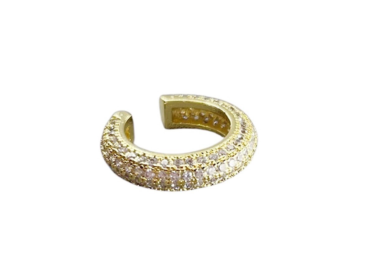 This 14k gold-plated ear cuff measures 16mm in diameter and is embellished with pave cubic zirconia.