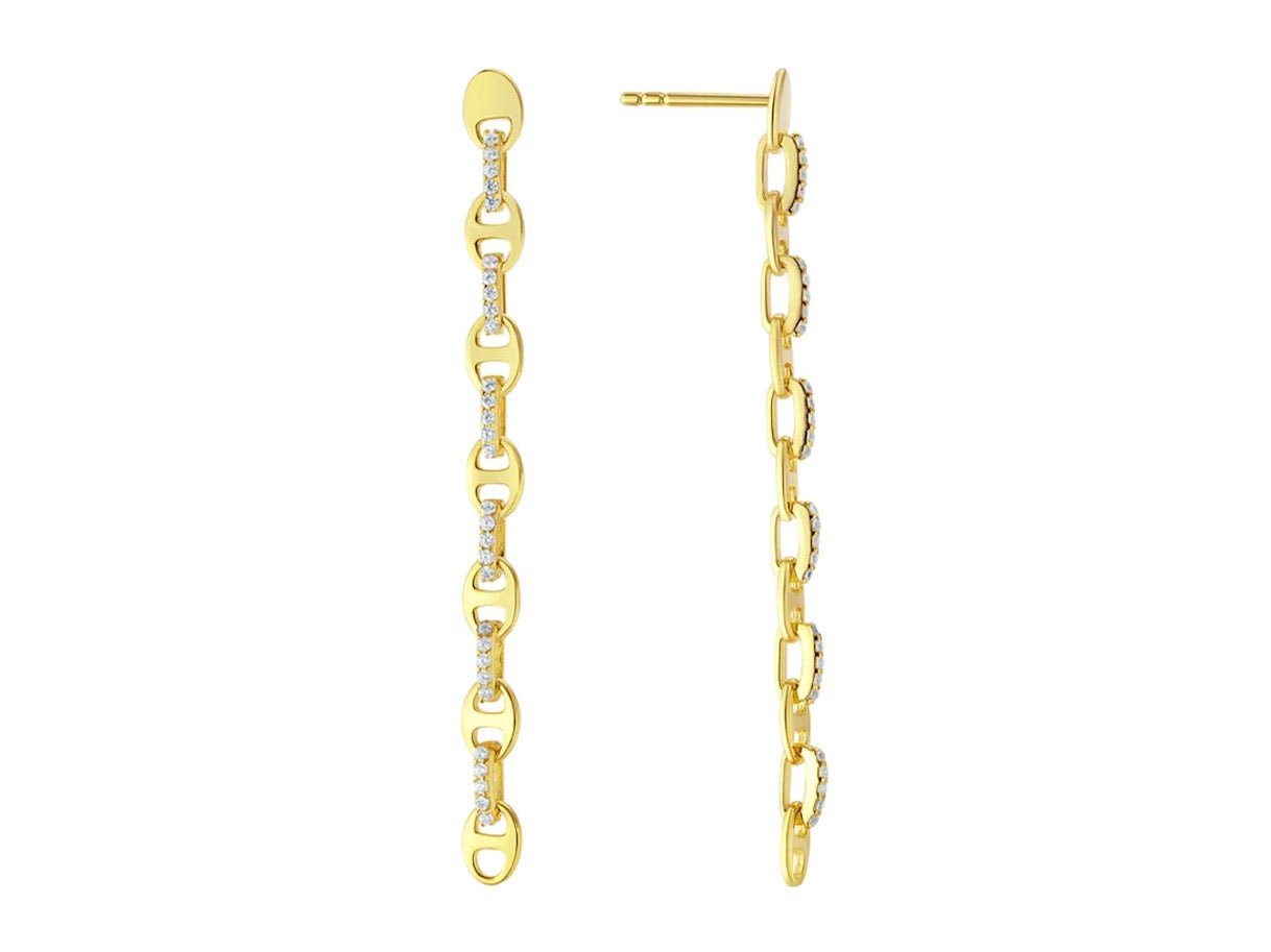 Long Gold Fancy Link Drop Earrings with CZs