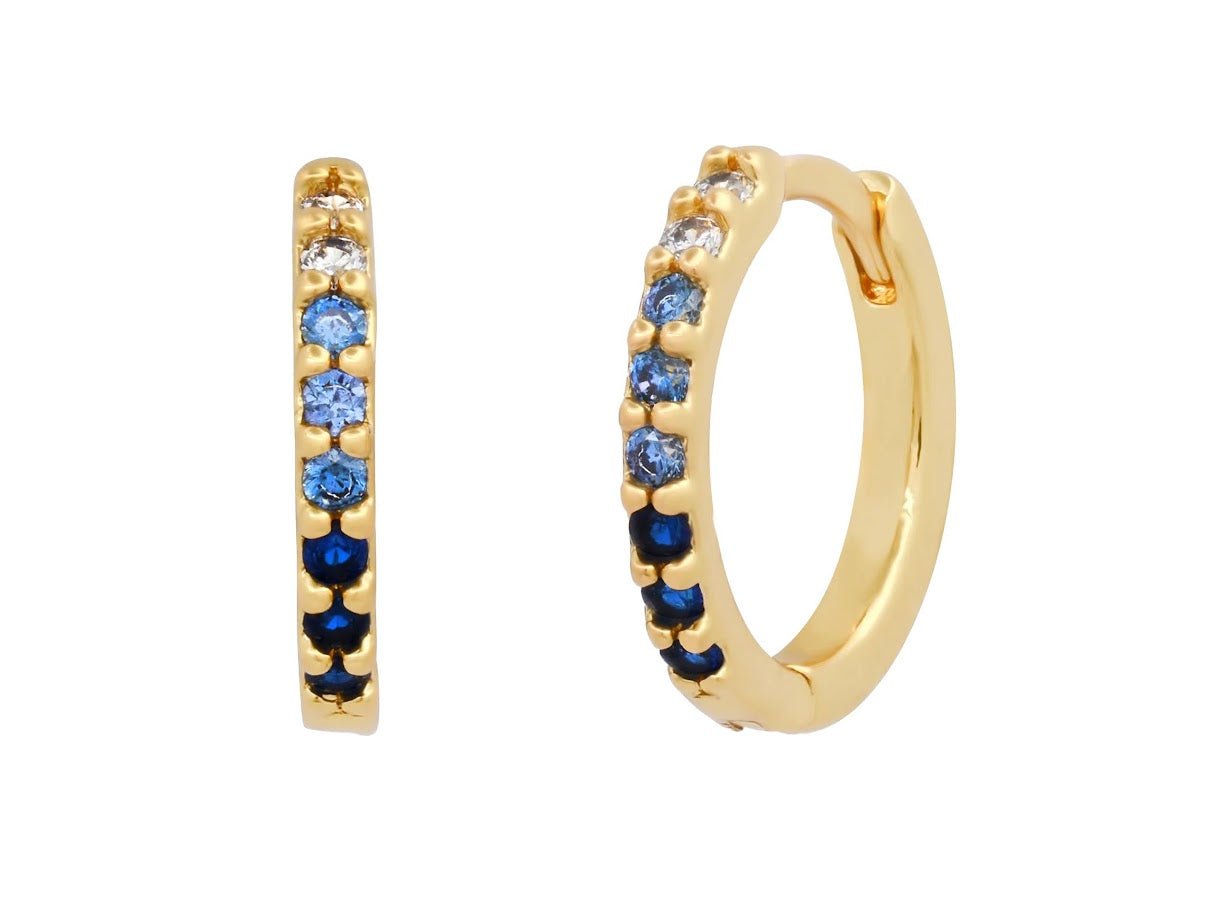 Gold Huggies with Pave Ombre Blue CZs