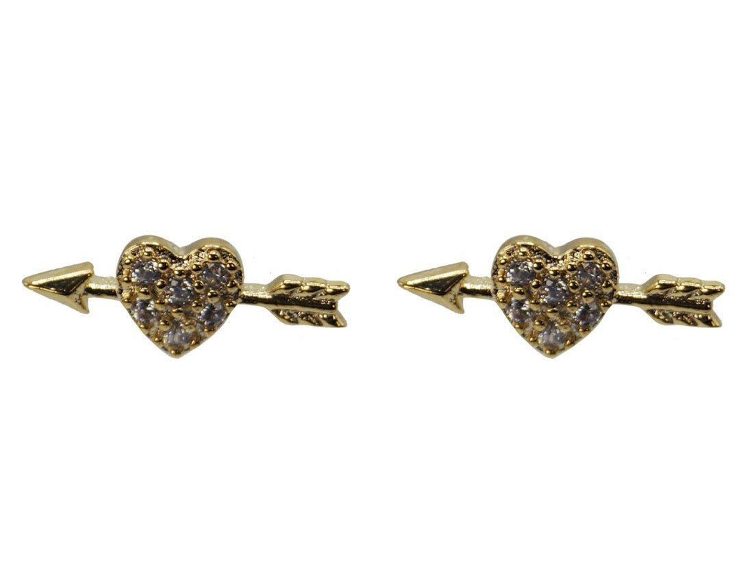 Lovely little studs with gold-plated hearts shot through with arrows. Pave cubic zirconia.