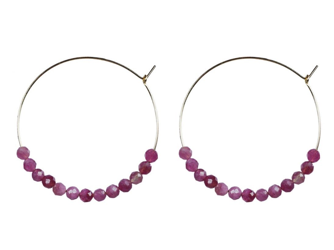 Gold-filled hoops, about 1.75 inches in diameter, with 4mm pink tourmaline beads.