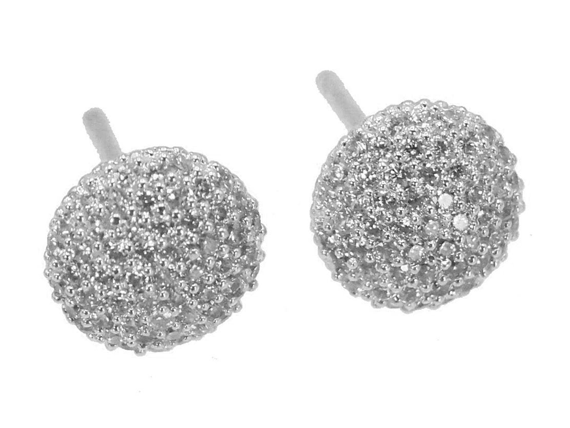 Silver CZ Button Stud Earrings