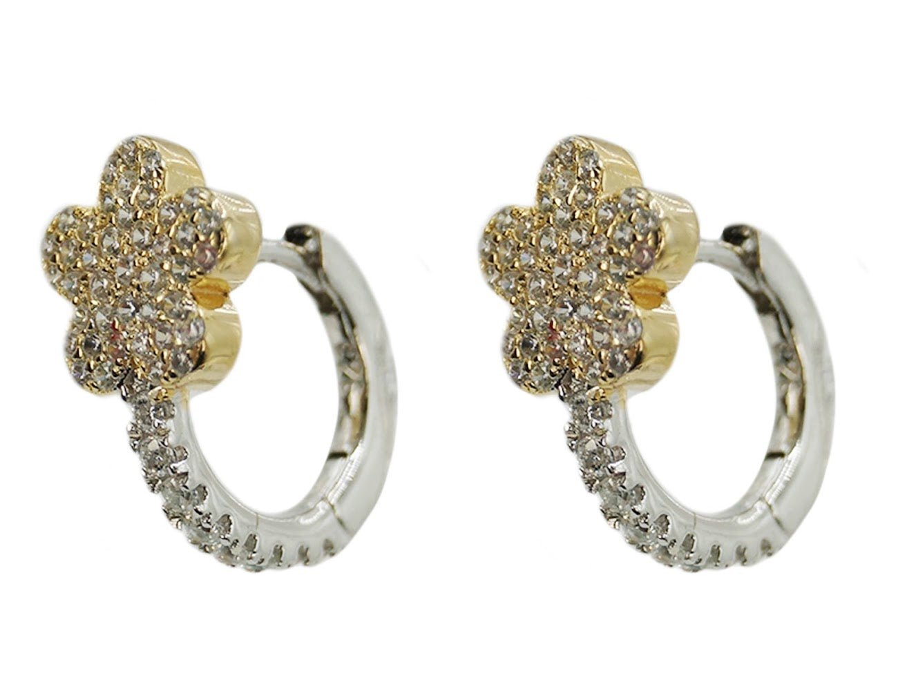 Two-Tone Flower Huggie Earrings