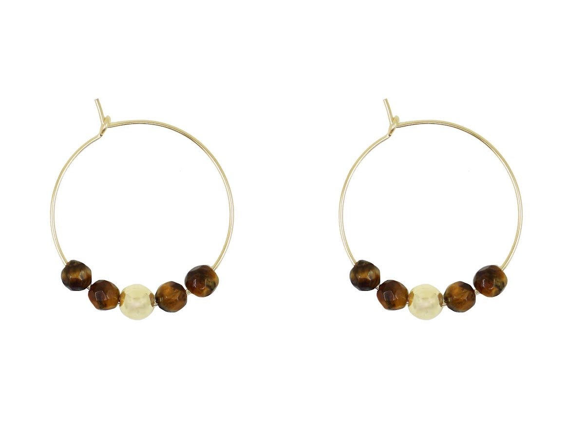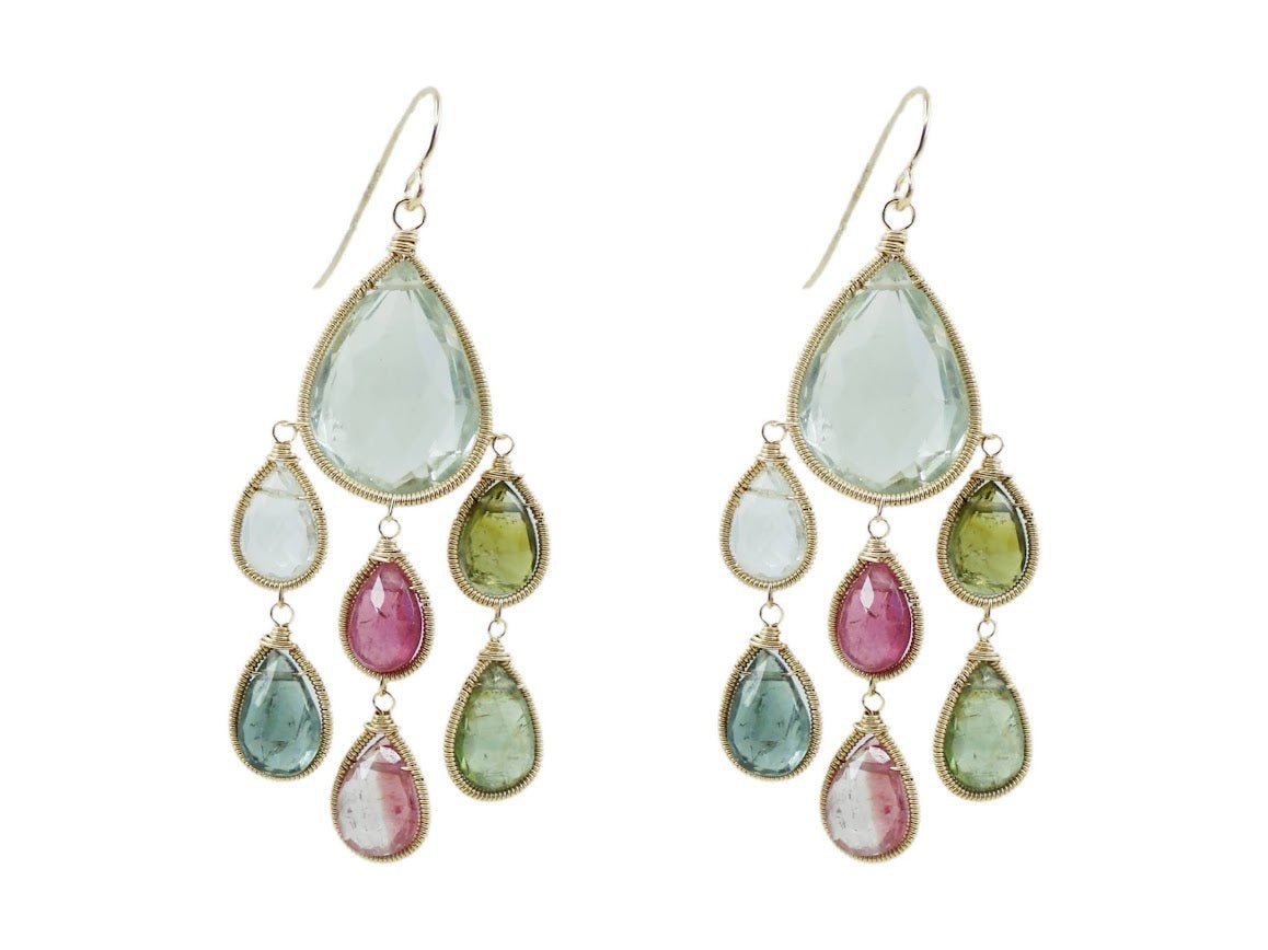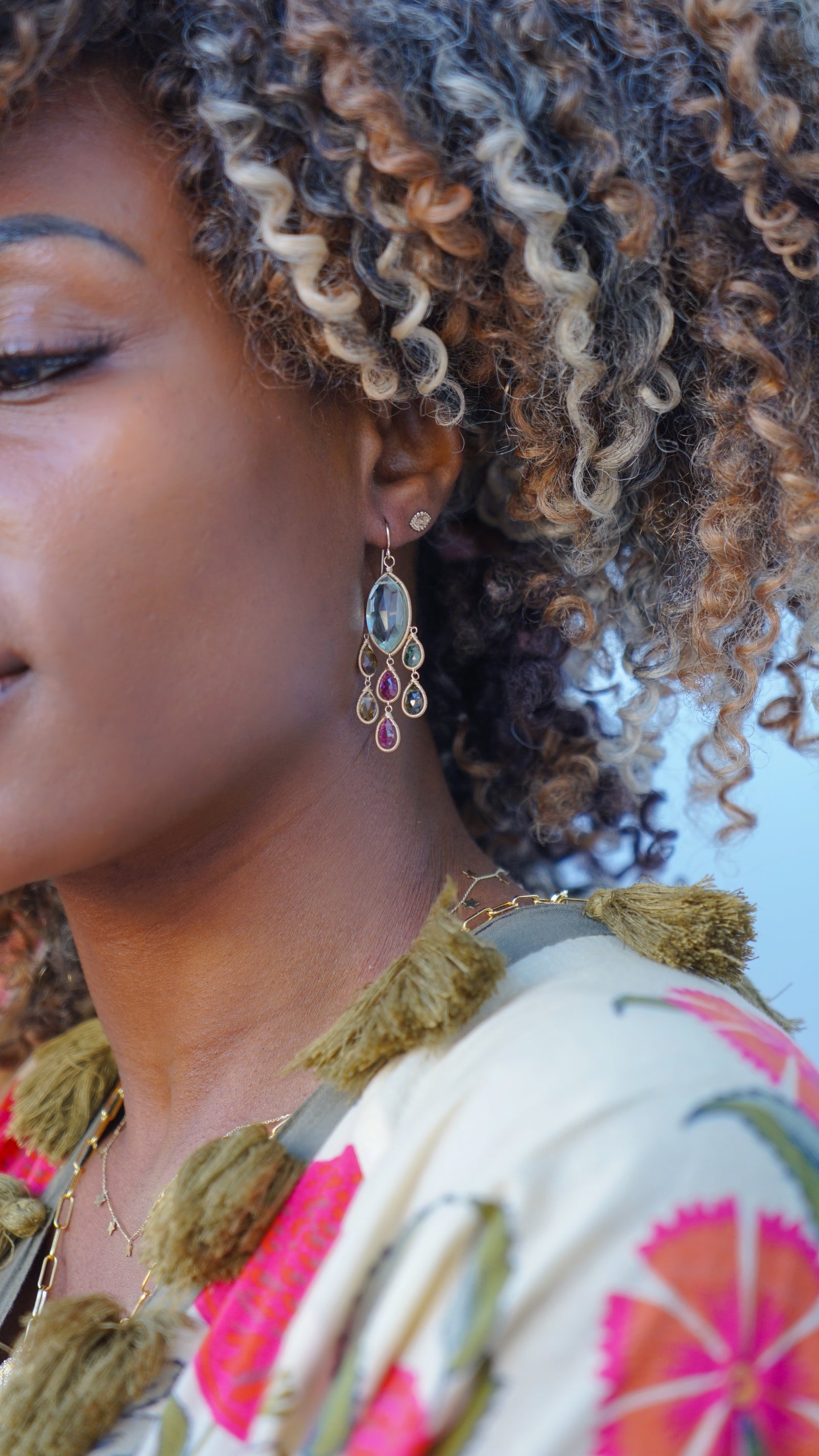 Moonstone Double Ring Drop Earrings with Tourmalines