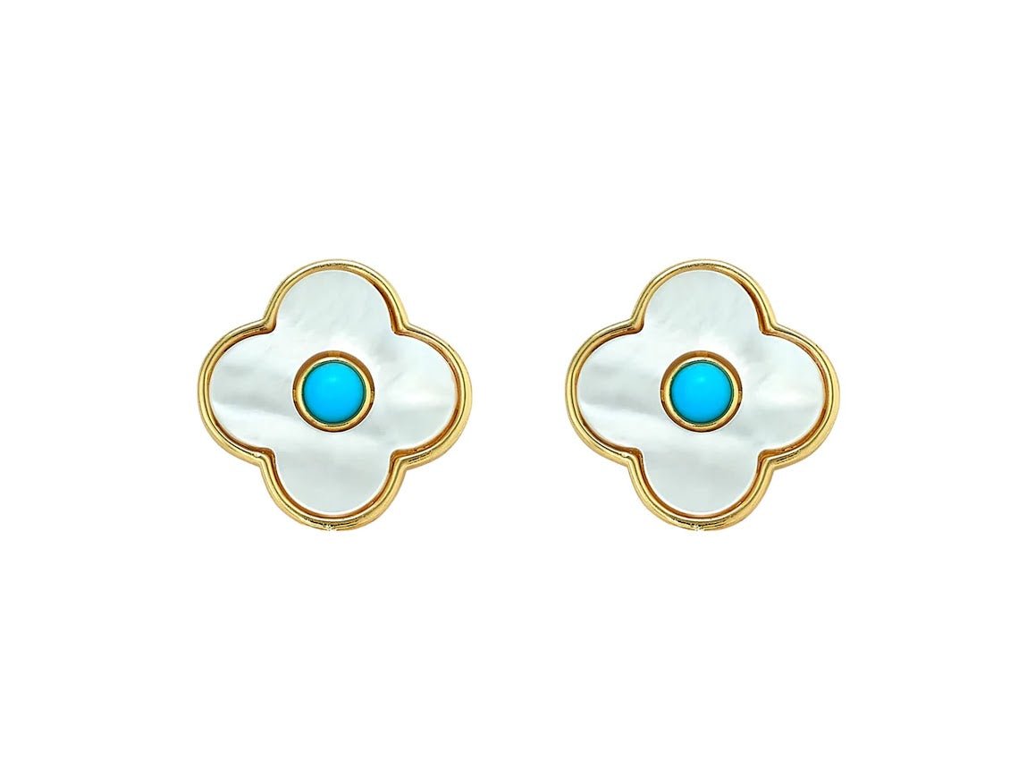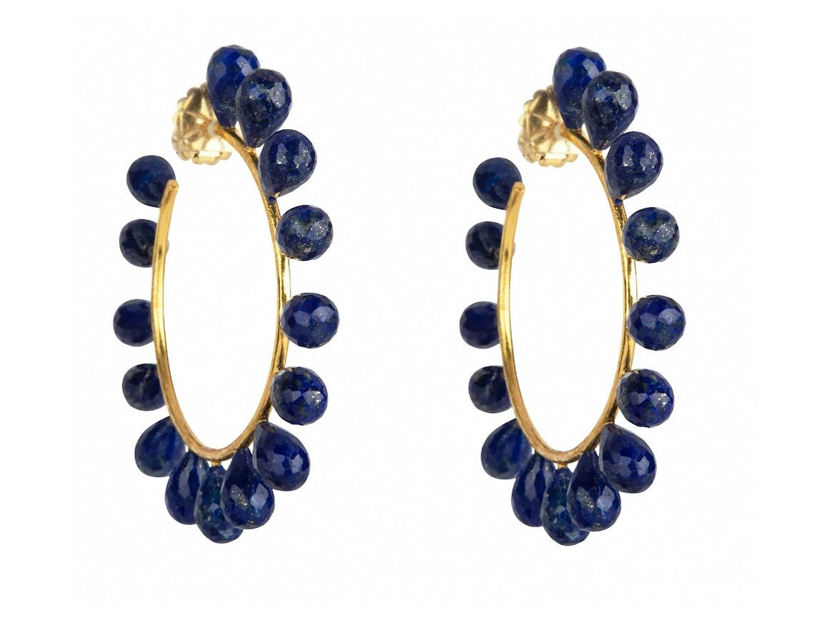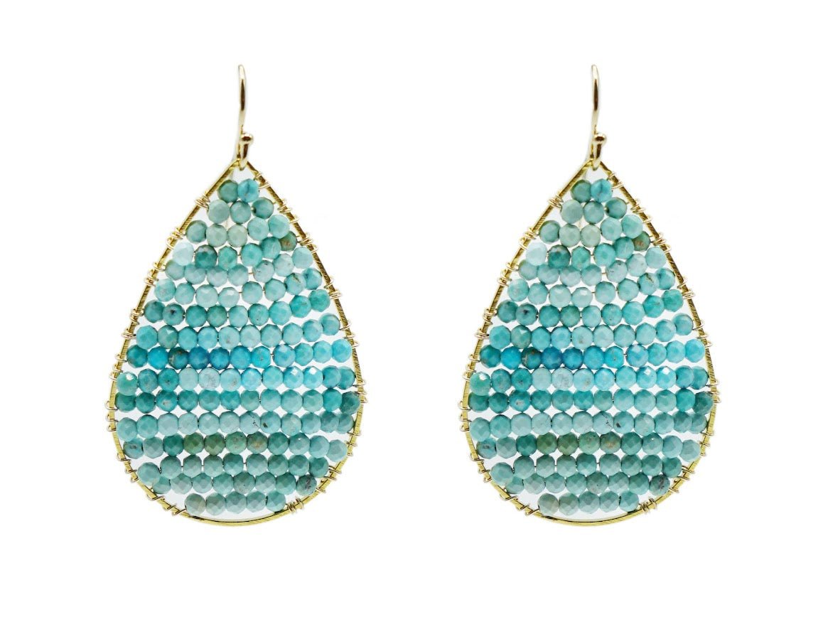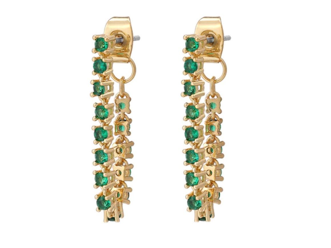 Moonstone Double Ring Drop Earrings with Tourmalines