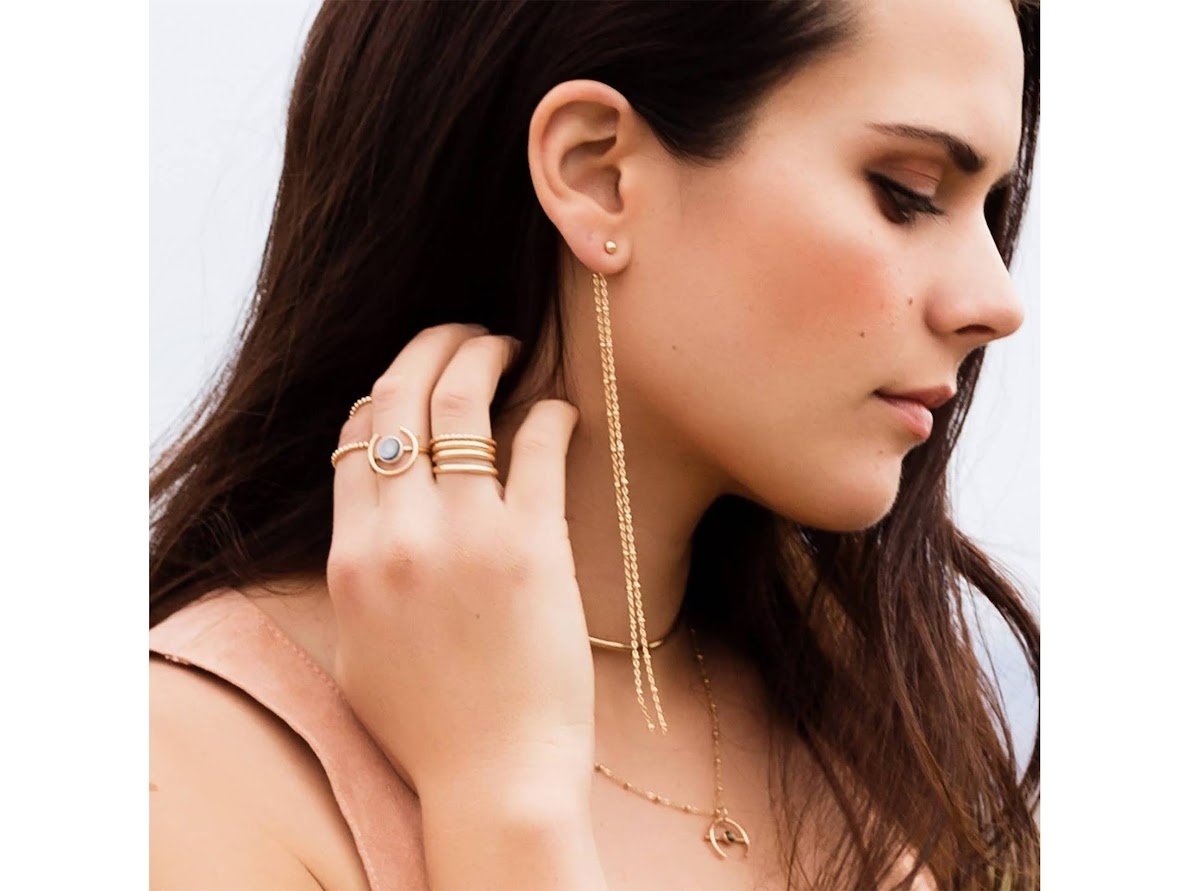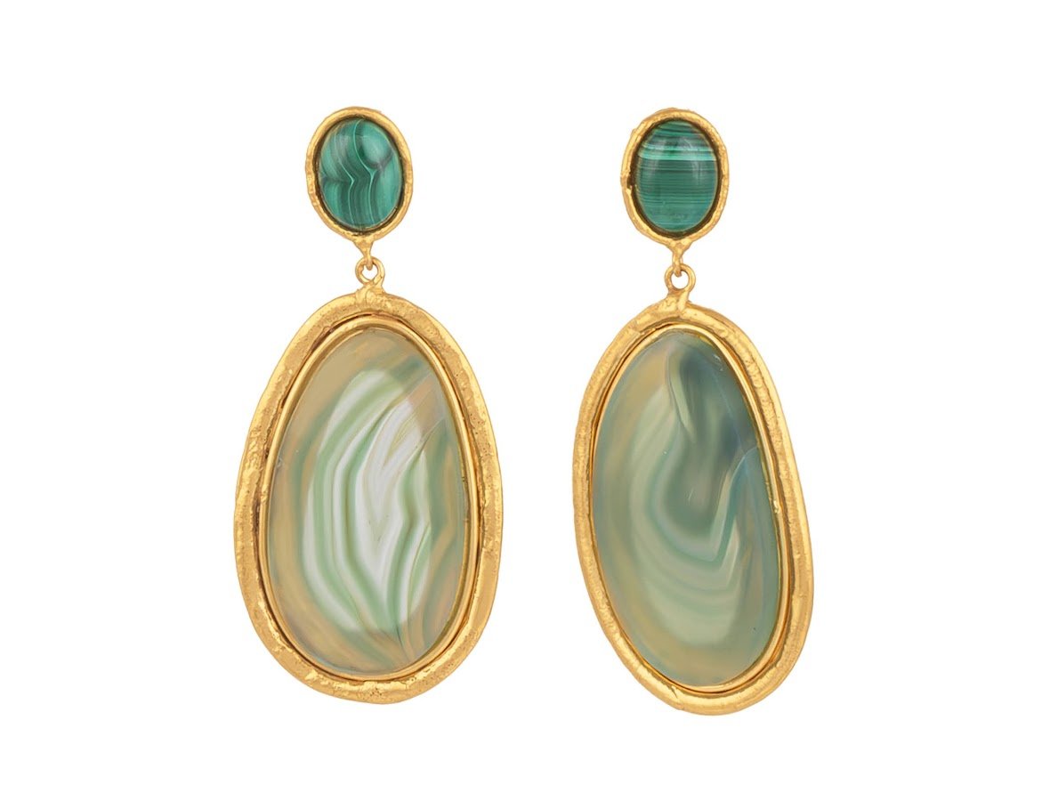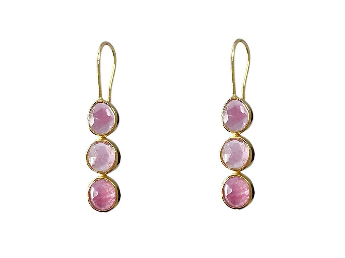 Moonstone, Pink Quartz, and Yellow Onyx Chandelier Earrings
