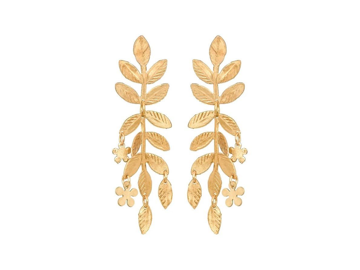 Brass Leaf and Flower Drop Earrings