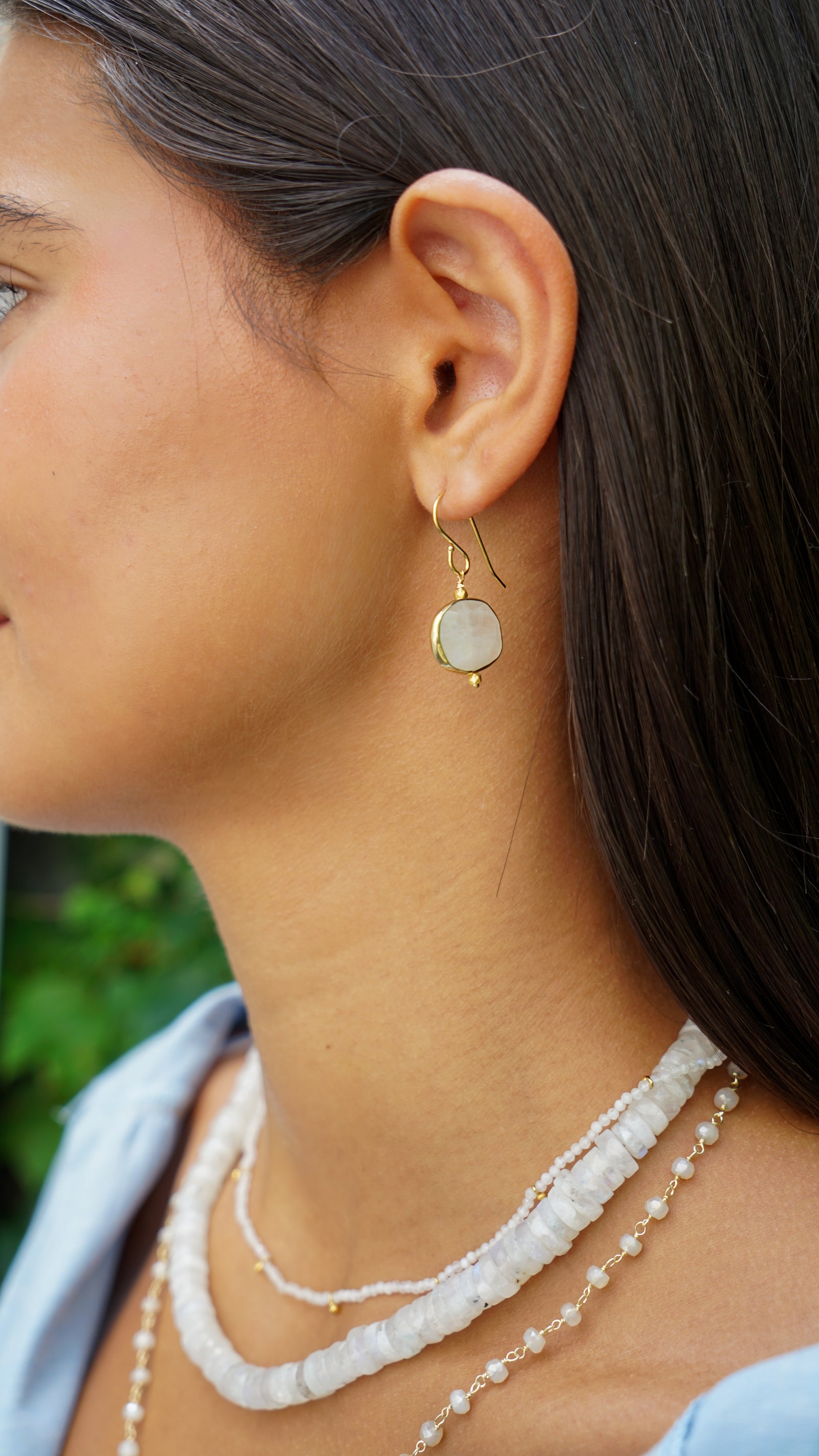 Bezeled Rainbow Moonstone Drop Earrings
