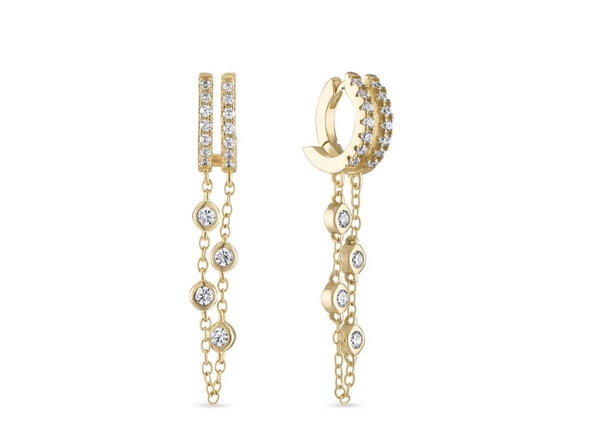 Gold Double Dangle Chain Huggie Earrings