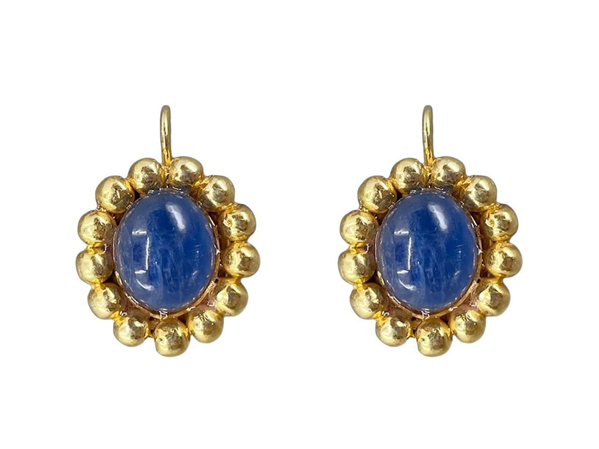 Gold and Lapis Oval Drop Earrings with CZs