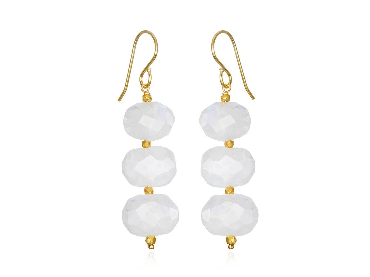 Faceted Rainbow Moonstone Drop Earrings
