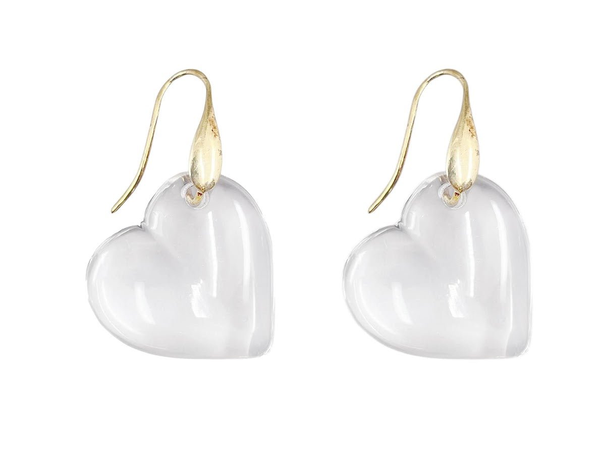 Gold and Italian Lucite Heart Drop Earrings