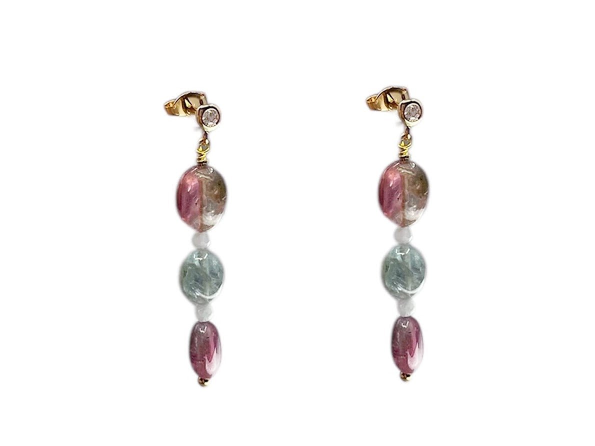 Kyanite, Morganite, and Tourmaline Drop Earrings