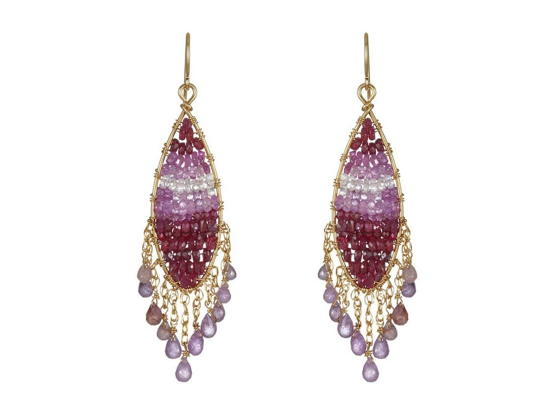 Faceted Burmese Ruby and Sapphire Drop Earrings