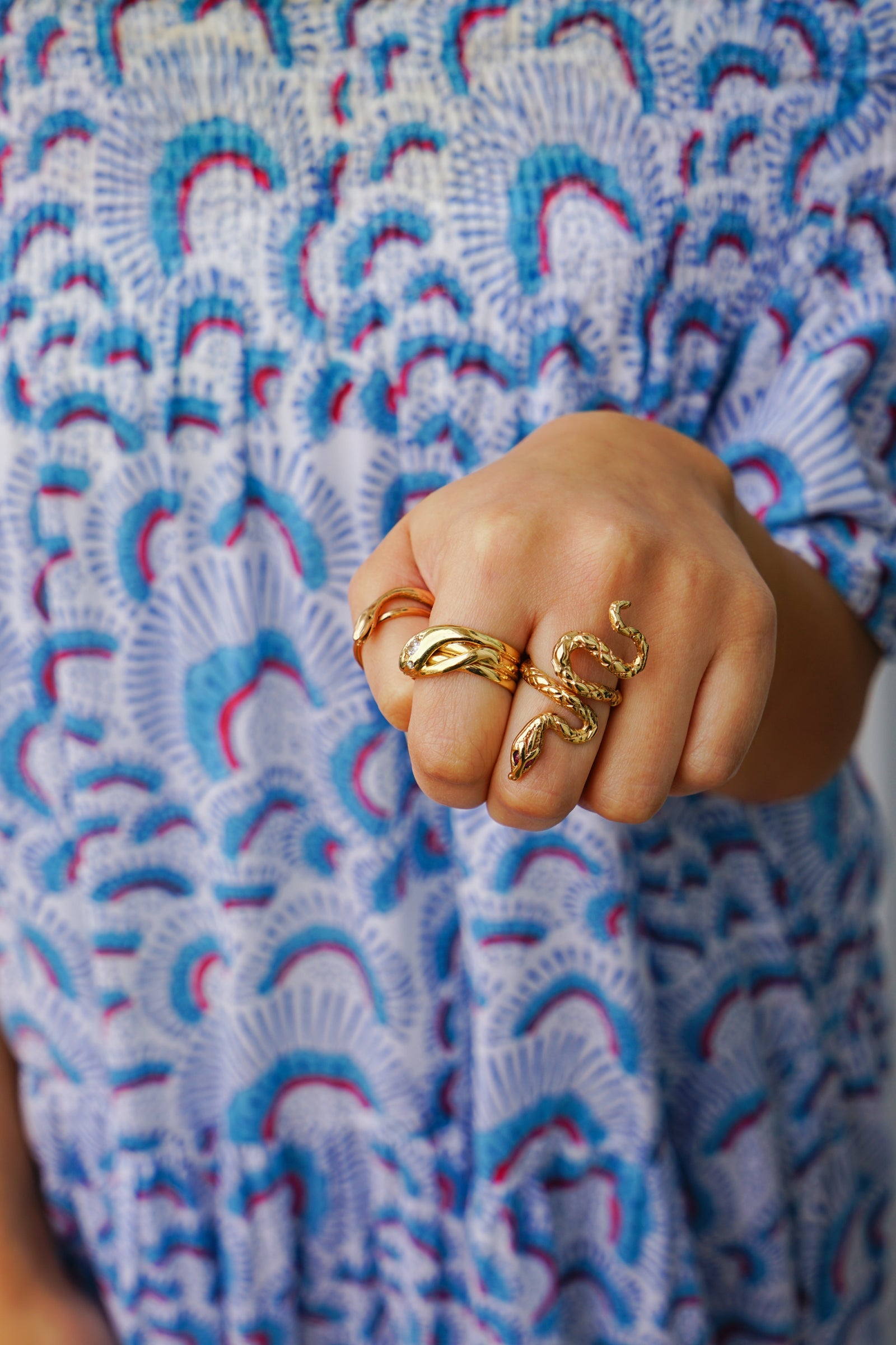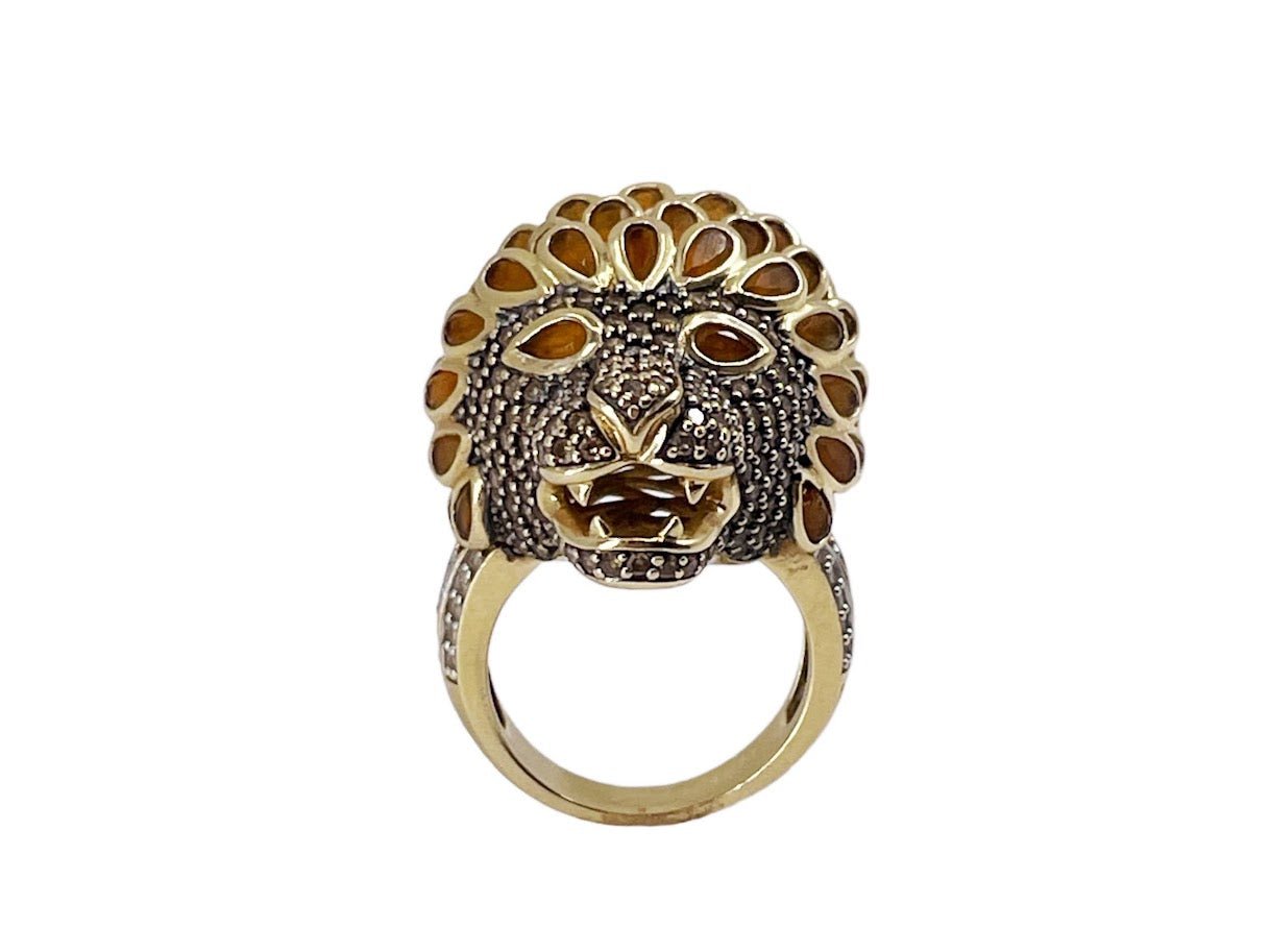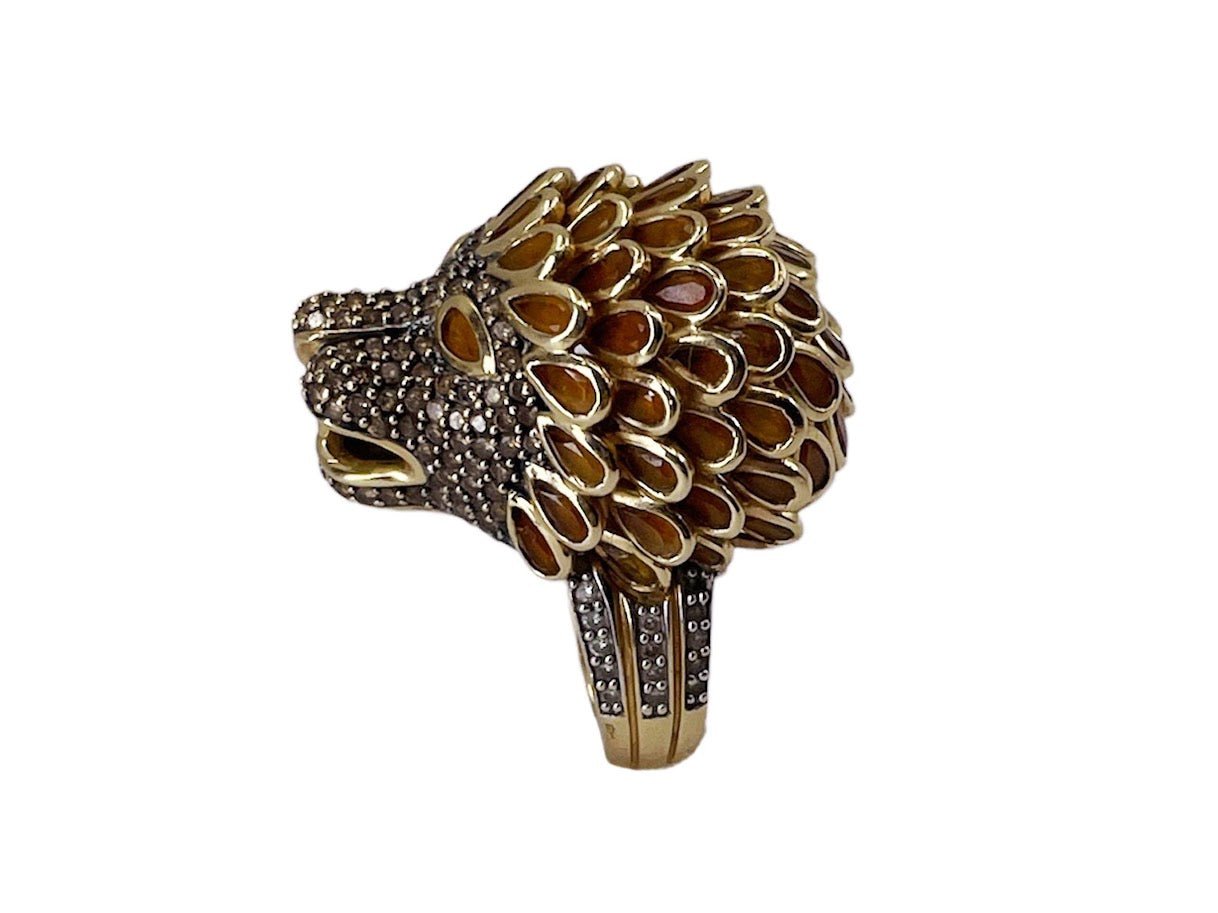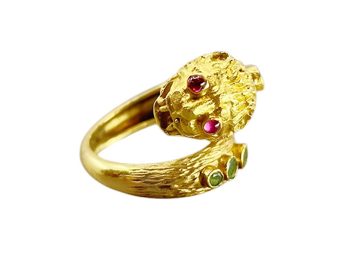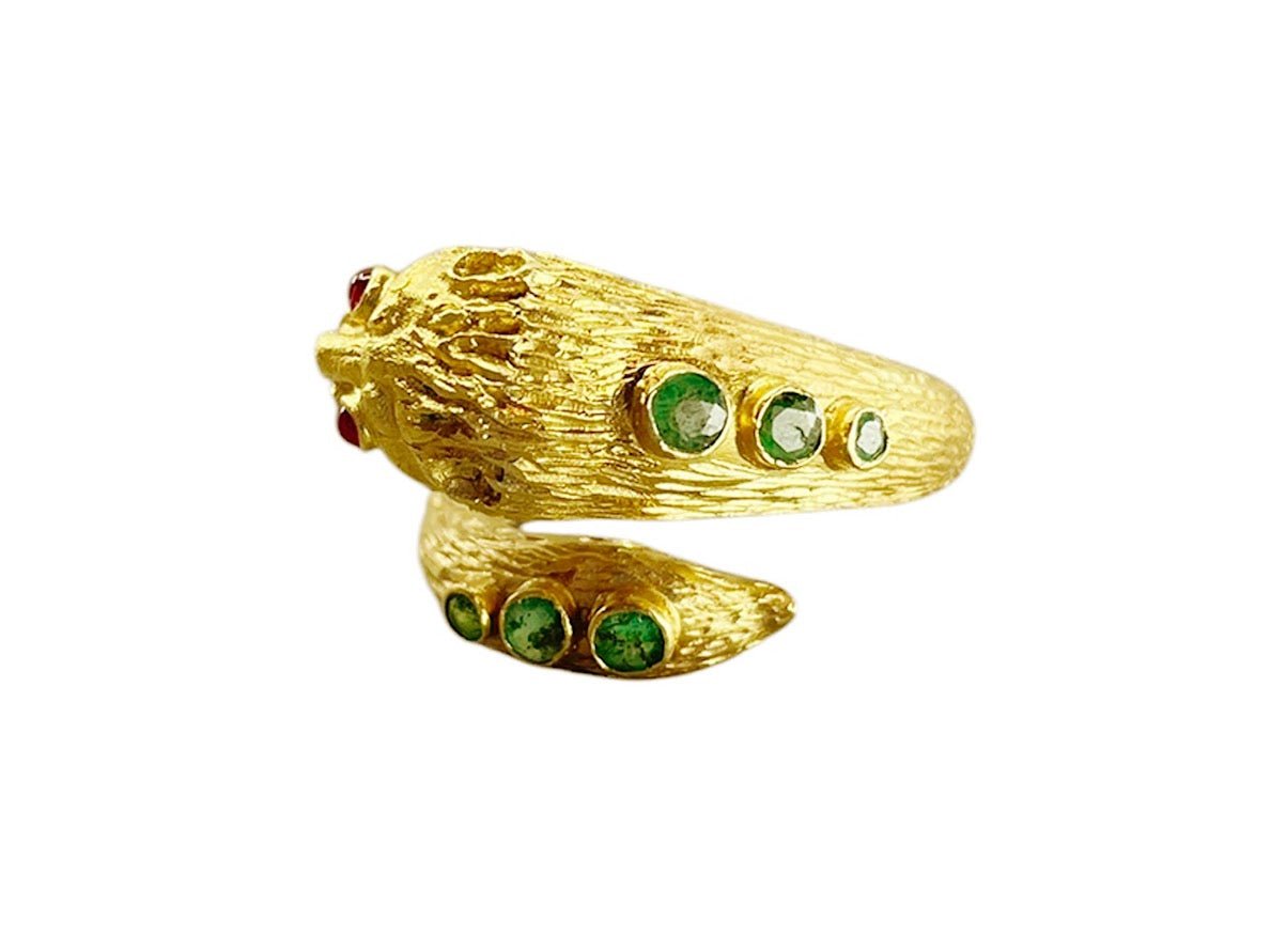 14k Yellow Gold Panther Ring with Rubies, Diamonds, and Sapphires