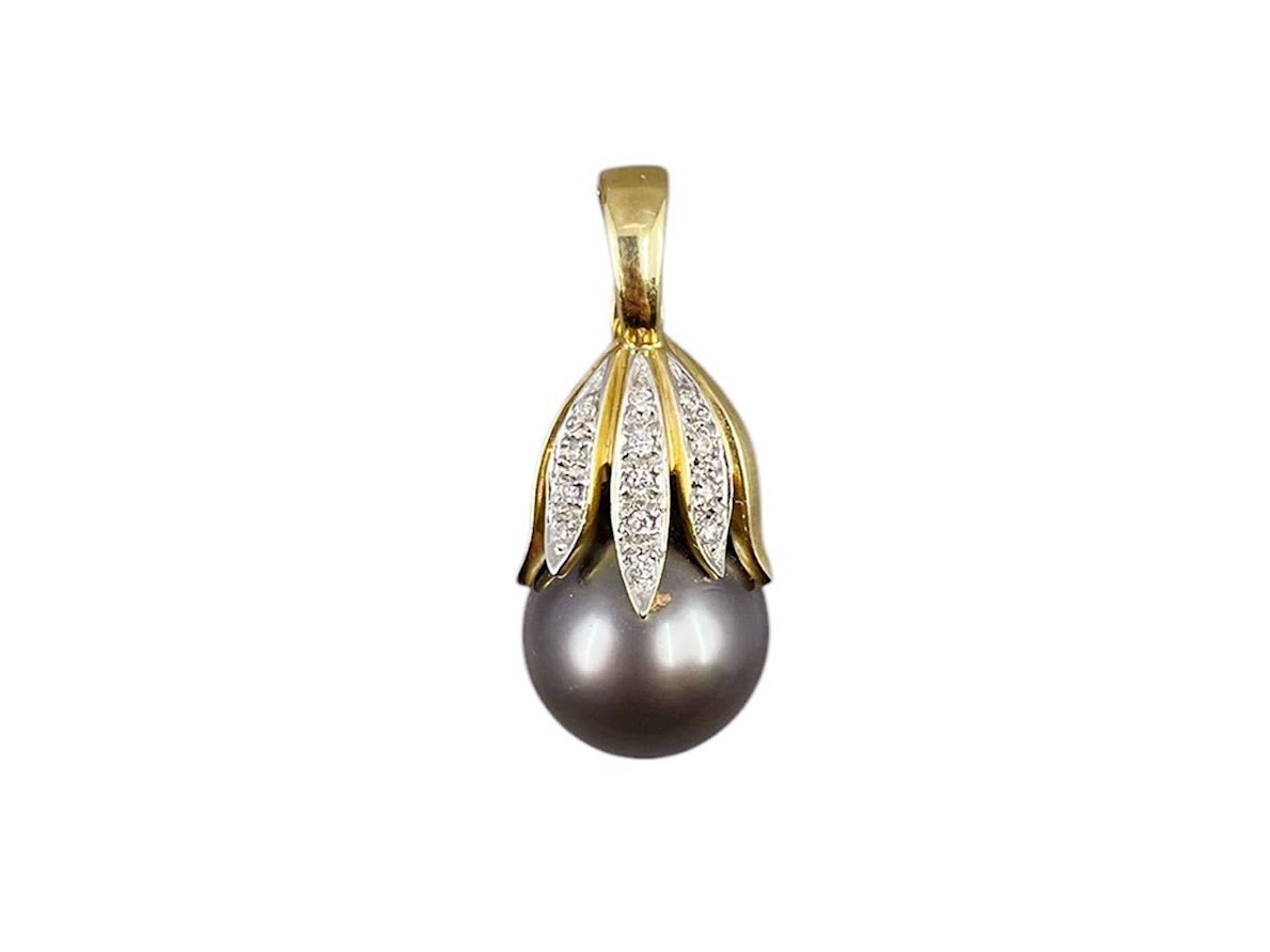 14k 1970s Gray Tahitian Pearl Charm with Diamond Cap