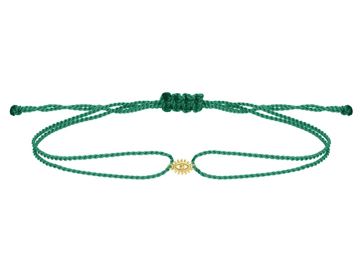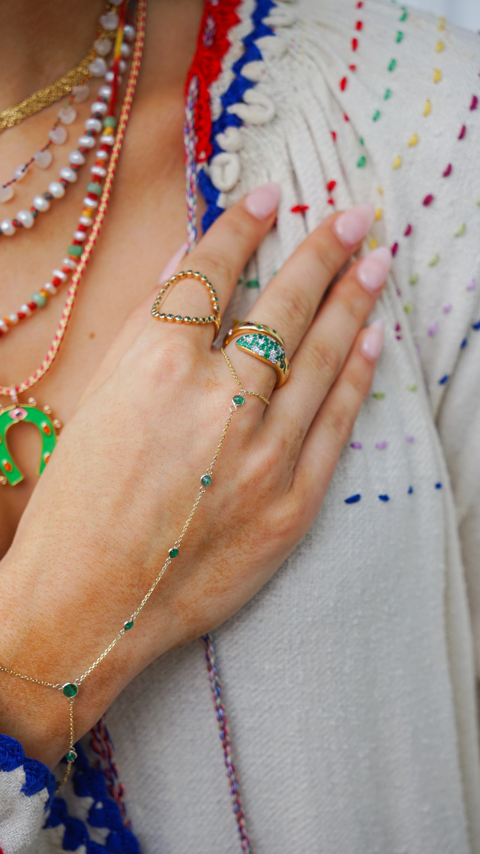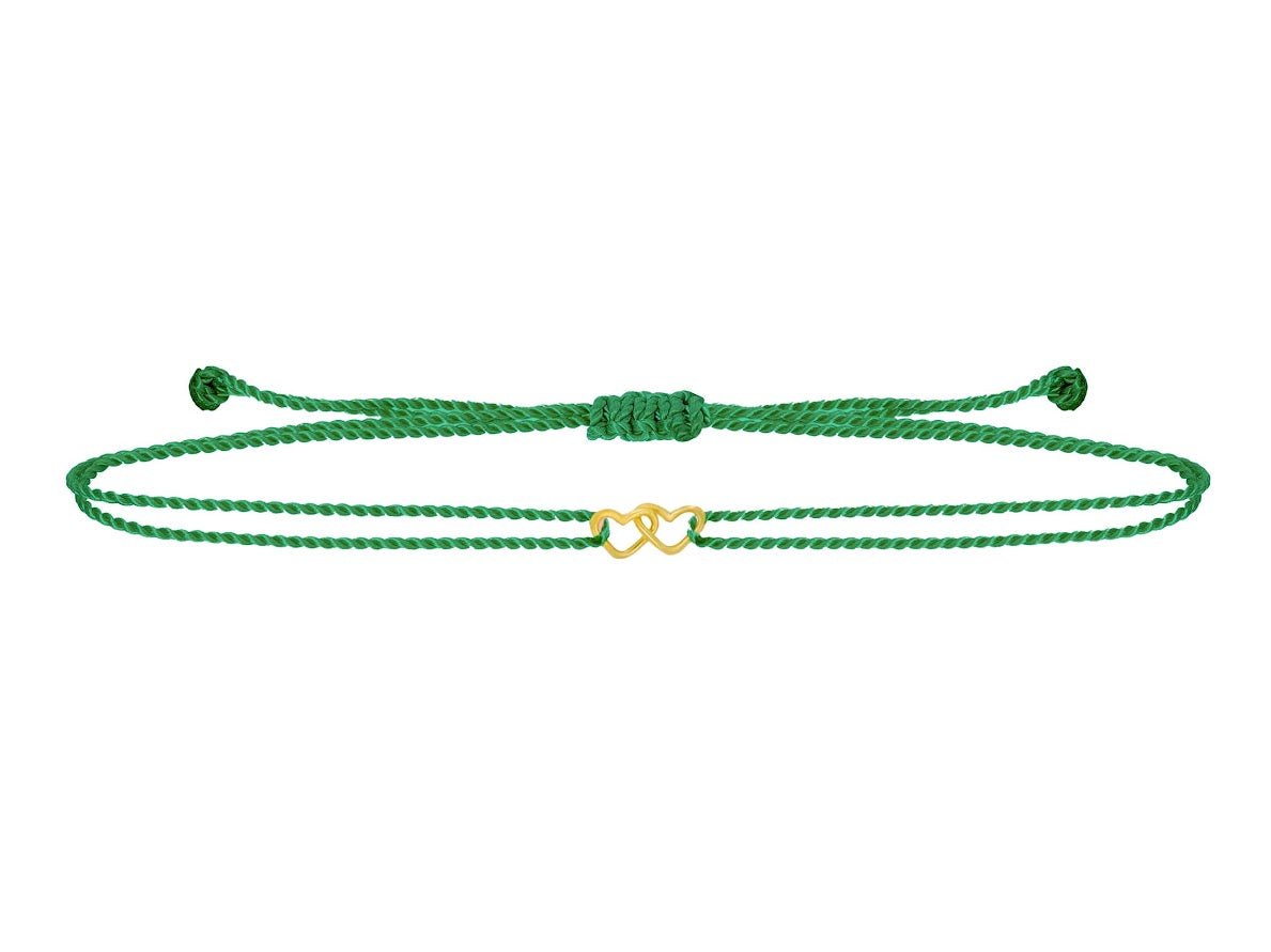 14k and Emerald Cord Bracelet with Tiny Linked Hearts