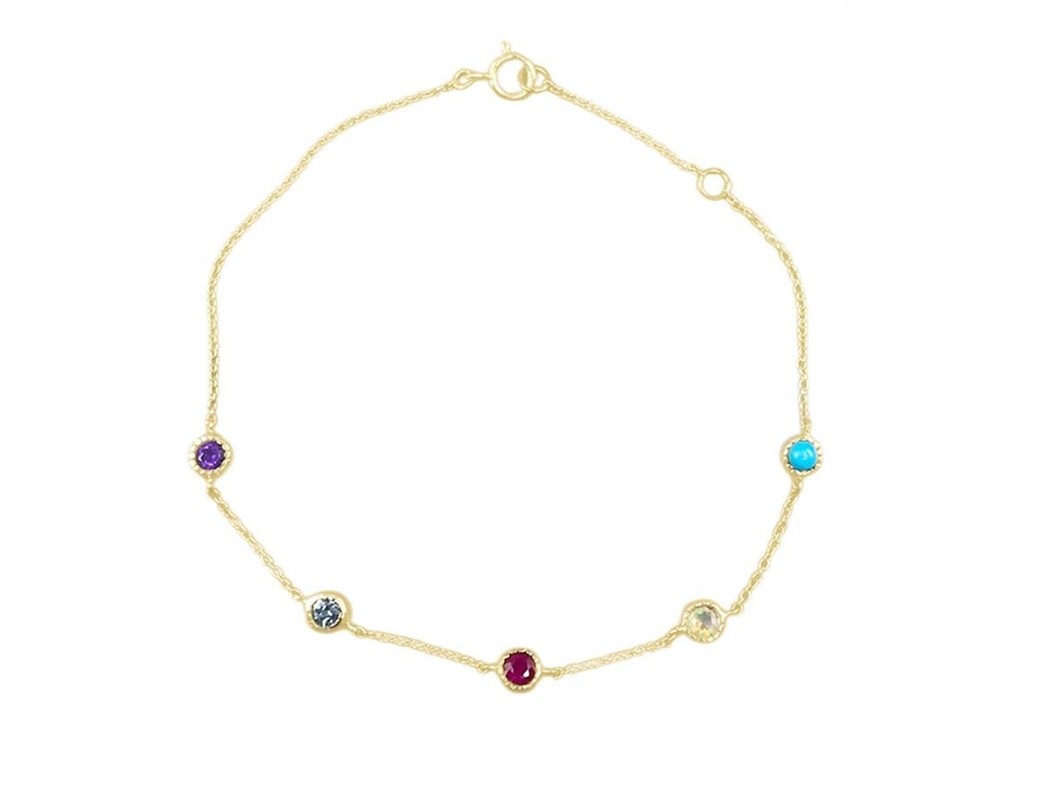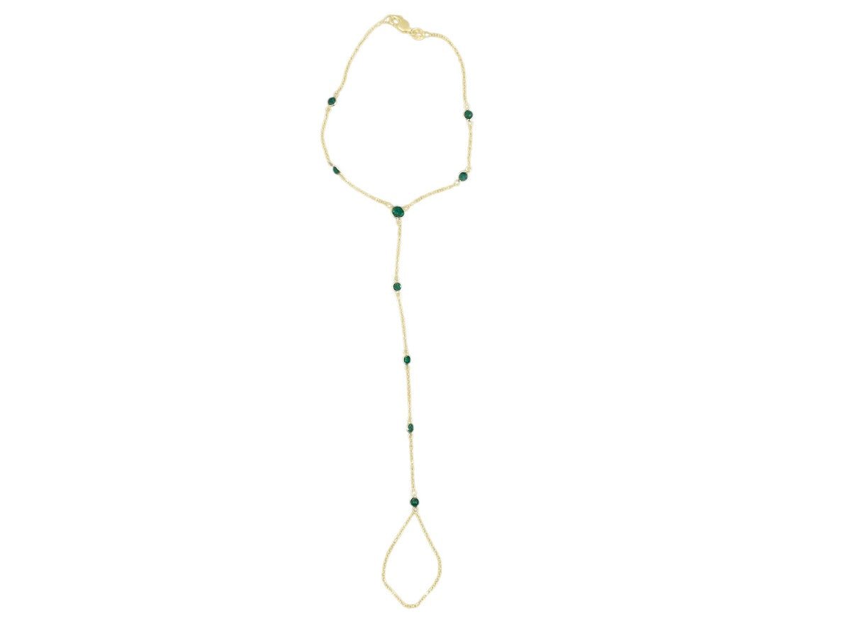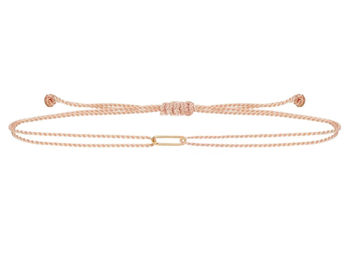14k and Emerald Cord Bracelet with Tiny Linked Hearts