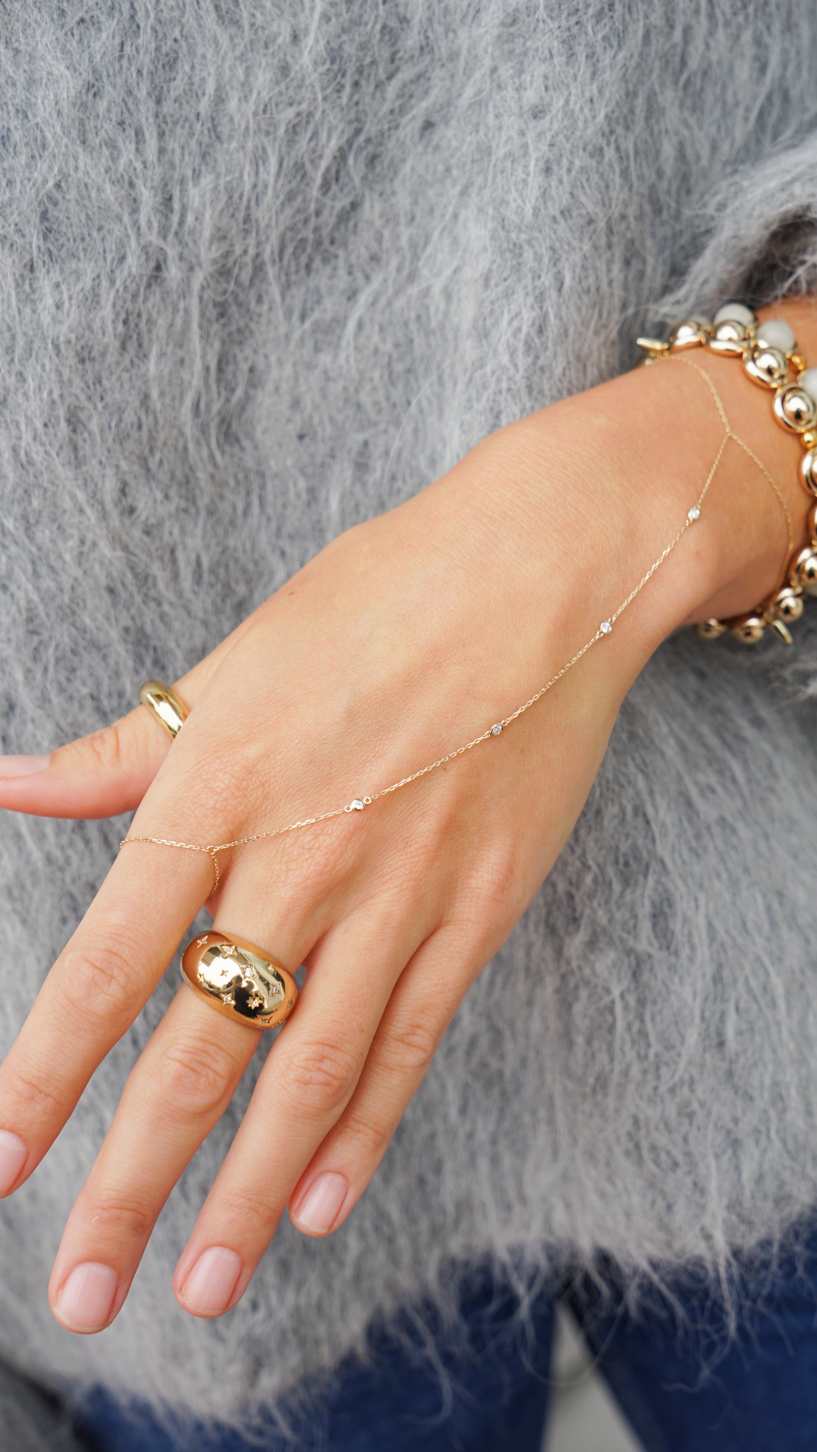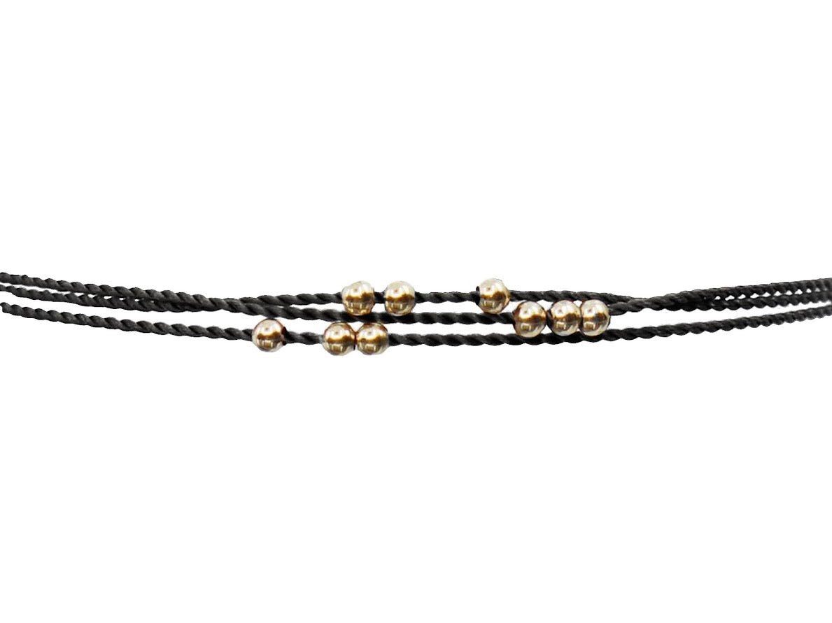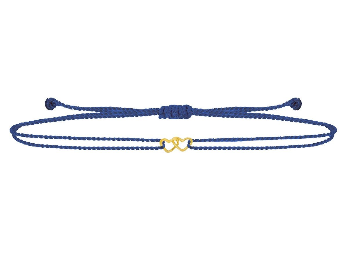 14k and Navy Cord Bracelet with Tiny Linked Hearts