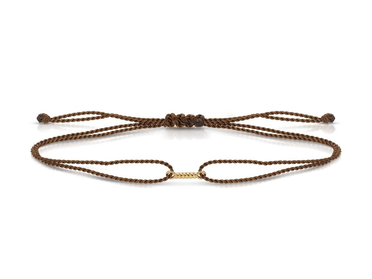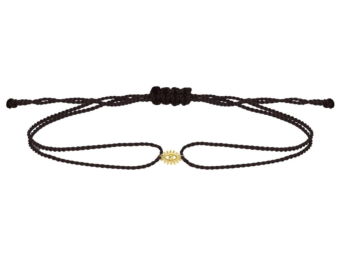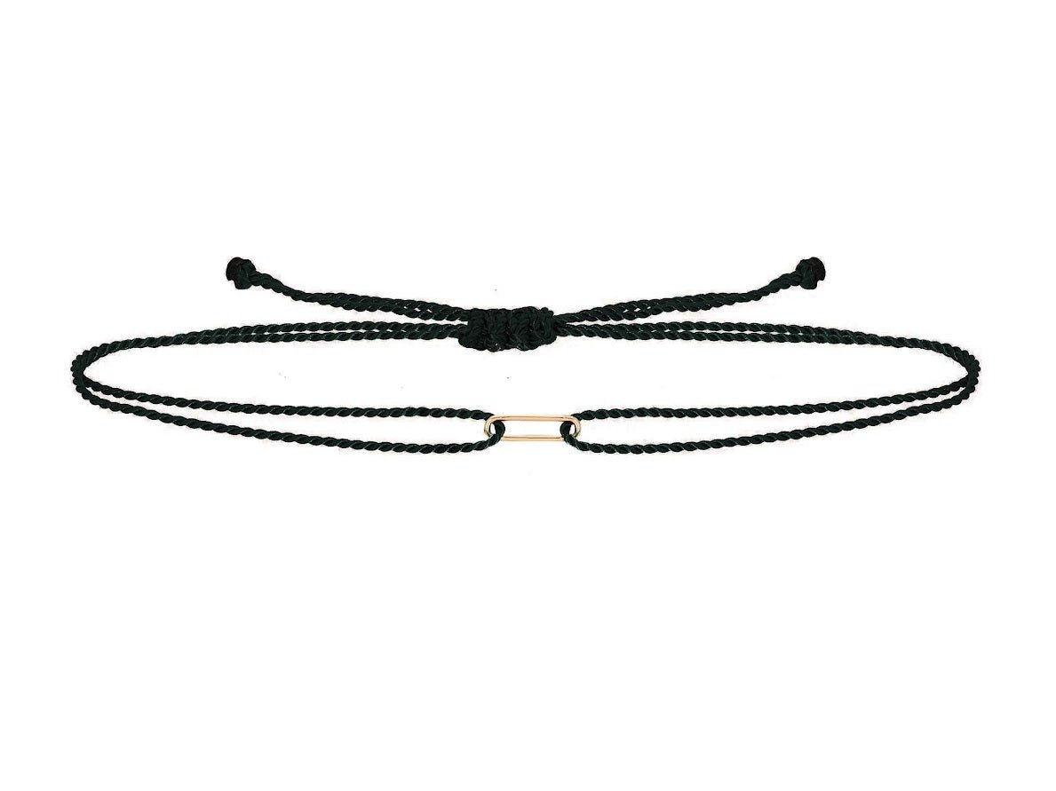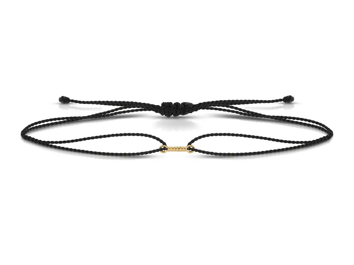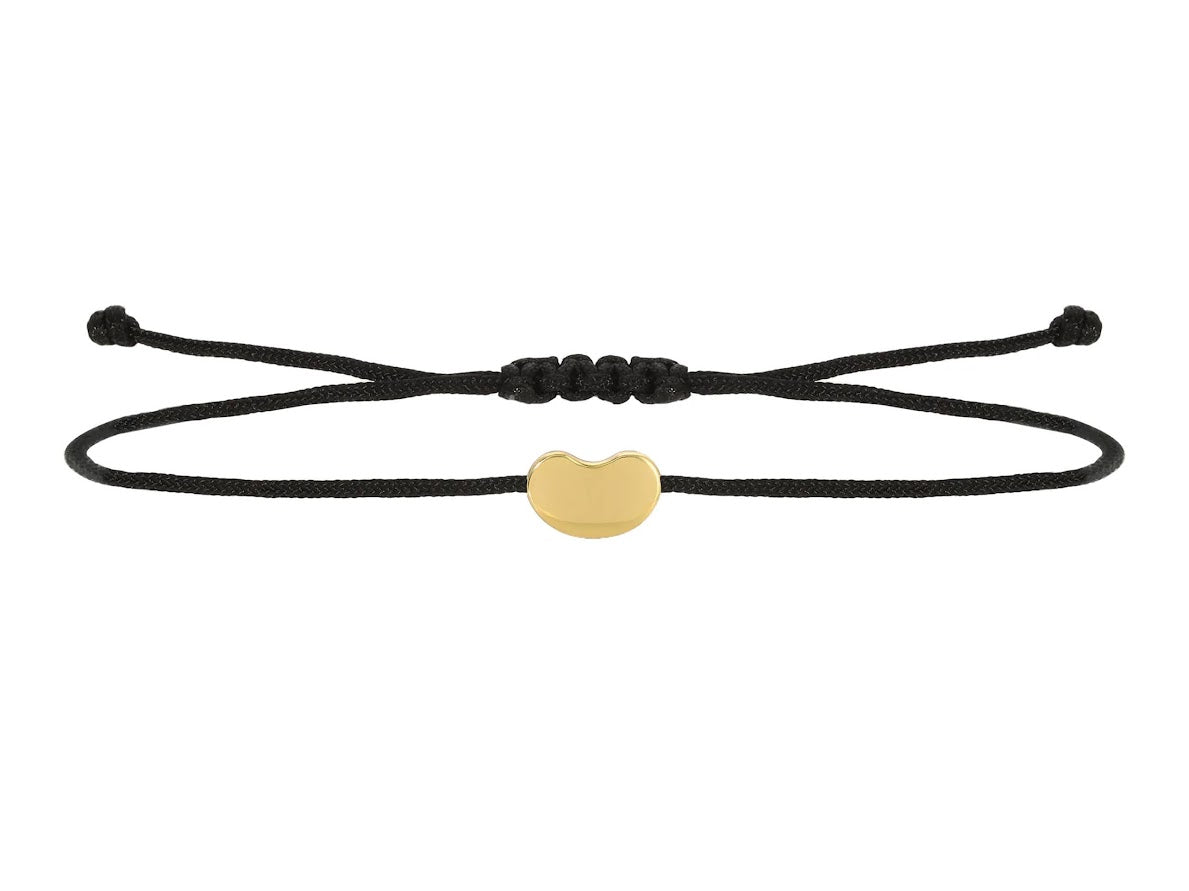 14k and Black Cord Bracelet with Engravable Bean Charm