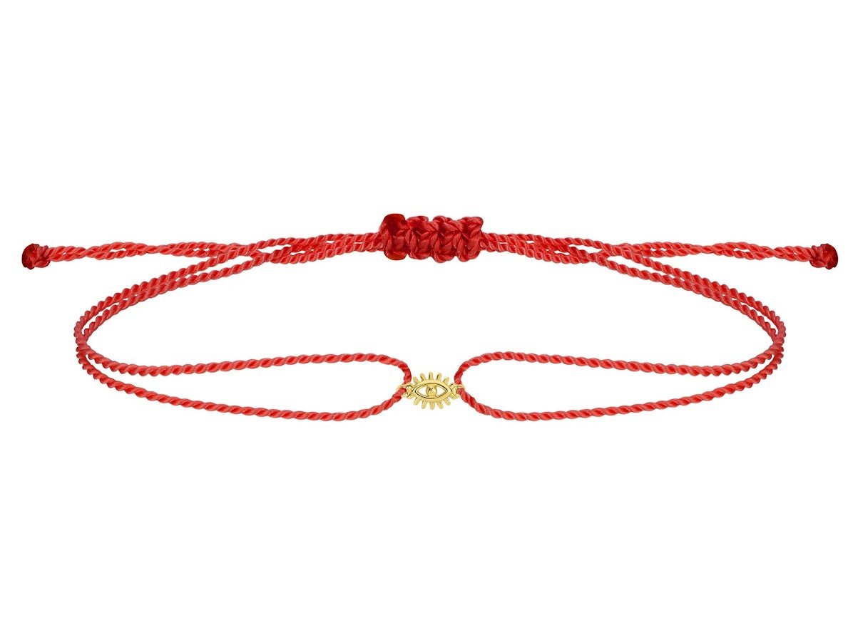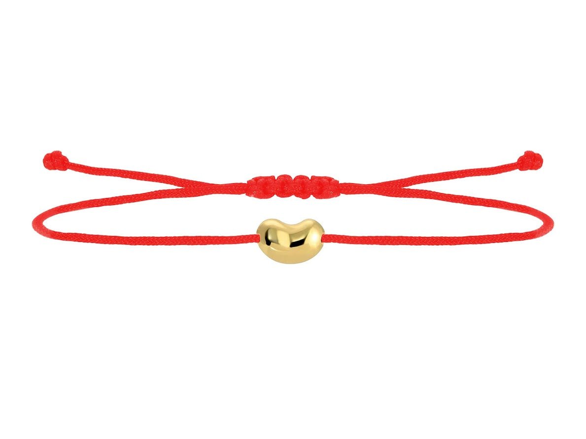 14k and Red Cord Bracelet with Engravable Bean Charm