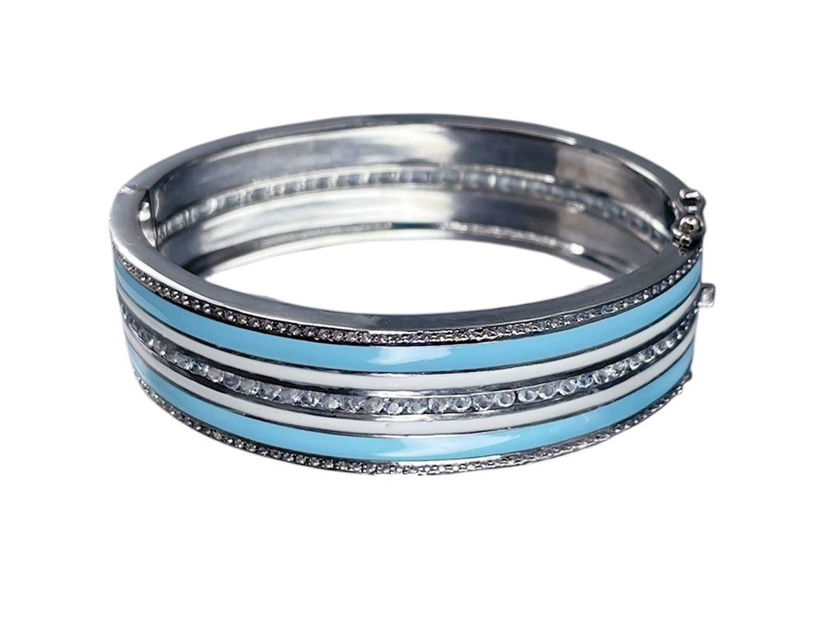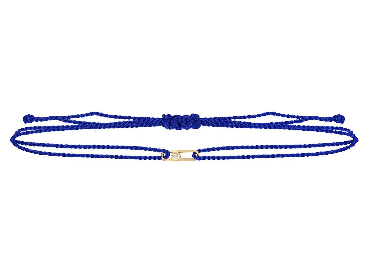 14k and Navy Cord Bracelet with Single Link and Diamond
