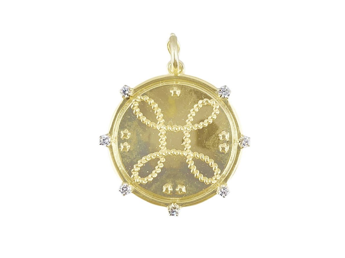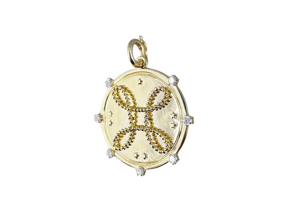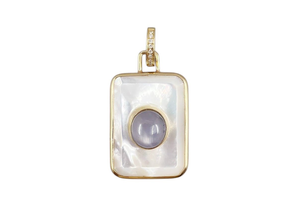 14k MOP and Star Sapphire Charm with Diamond Clasp