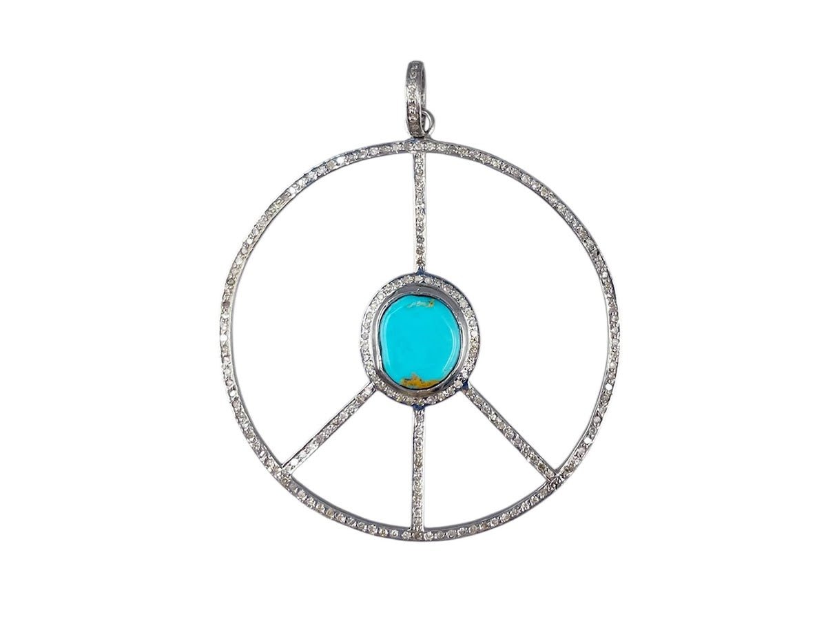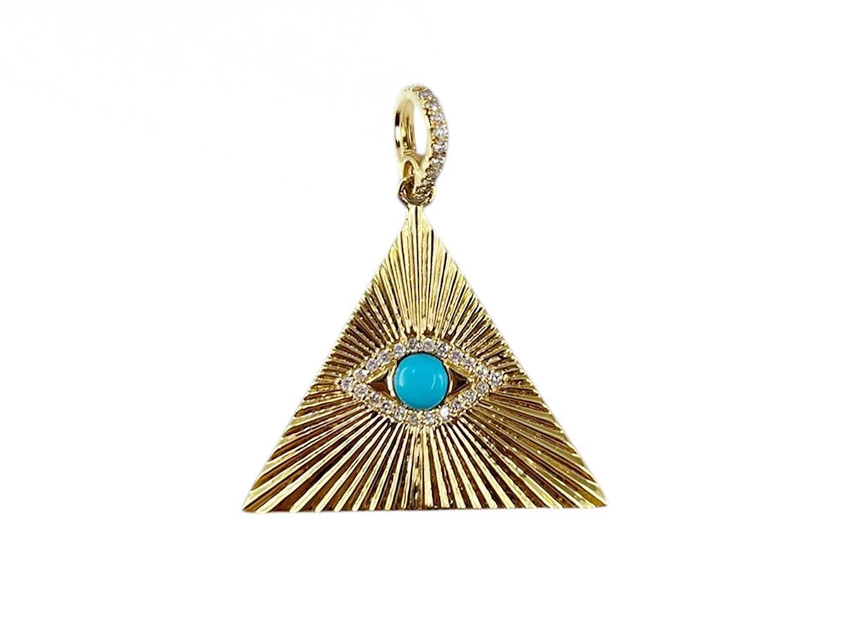 14k Turquoise and Diamond Evil Eye Triangle Pendant