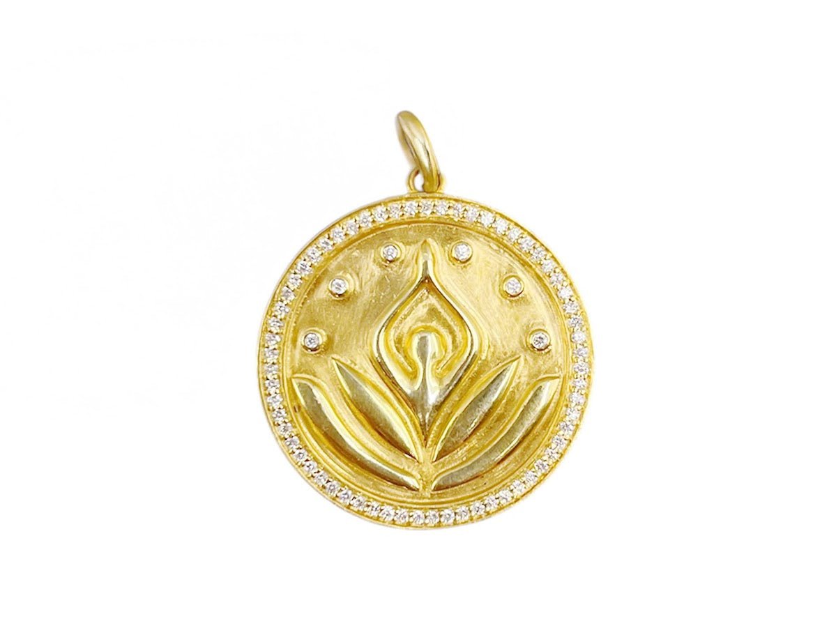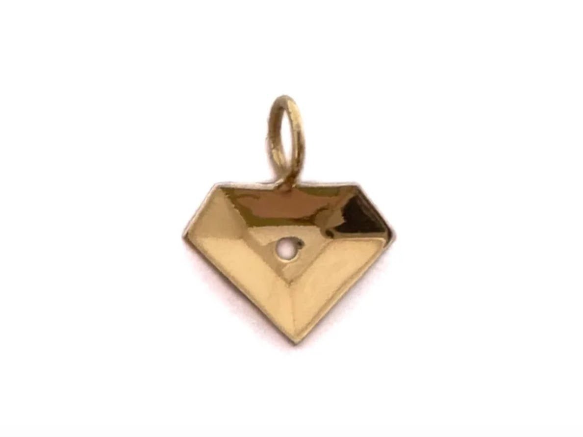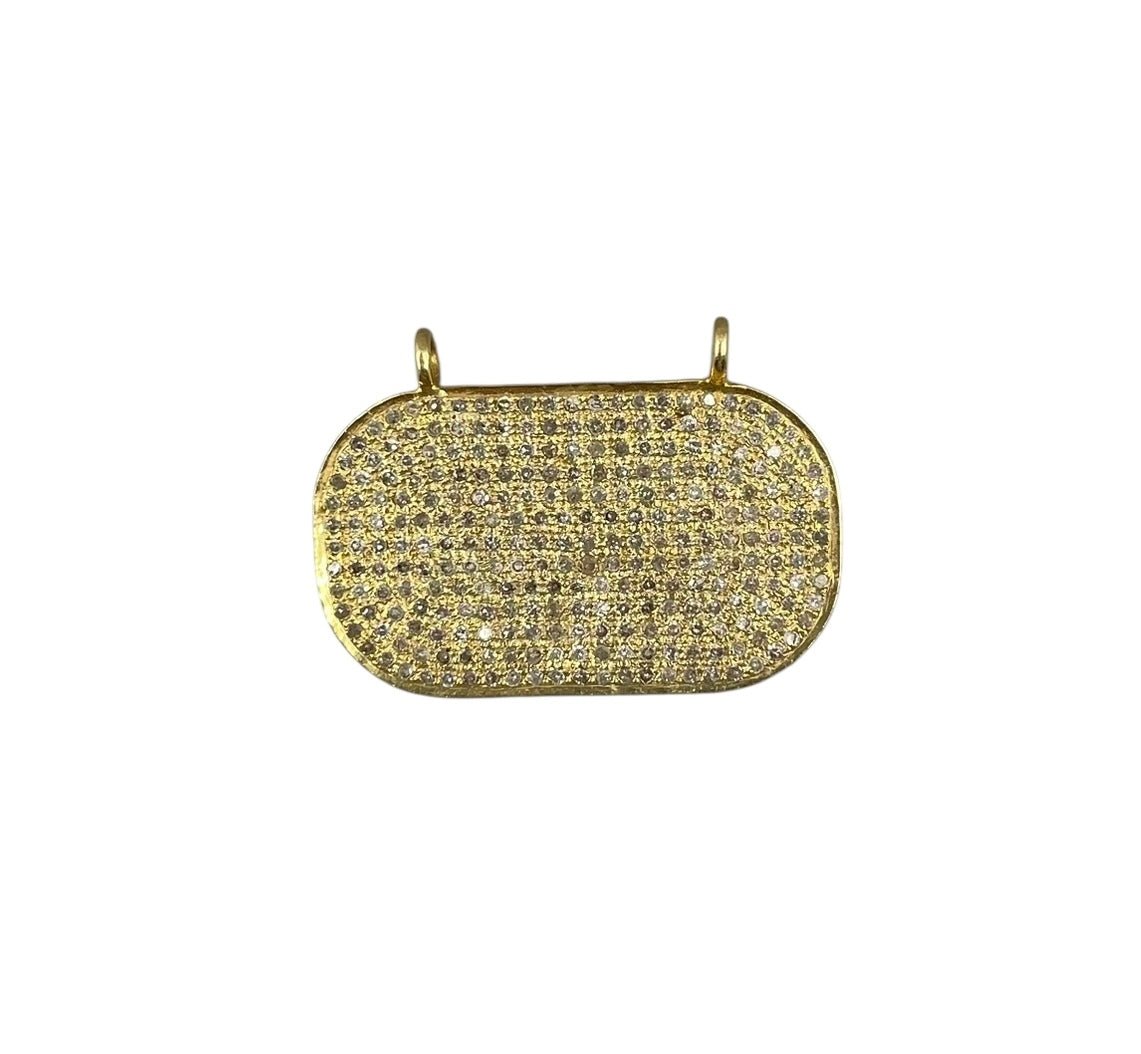 14k Horizontal Dog Tag Charm with Pave Diamonds