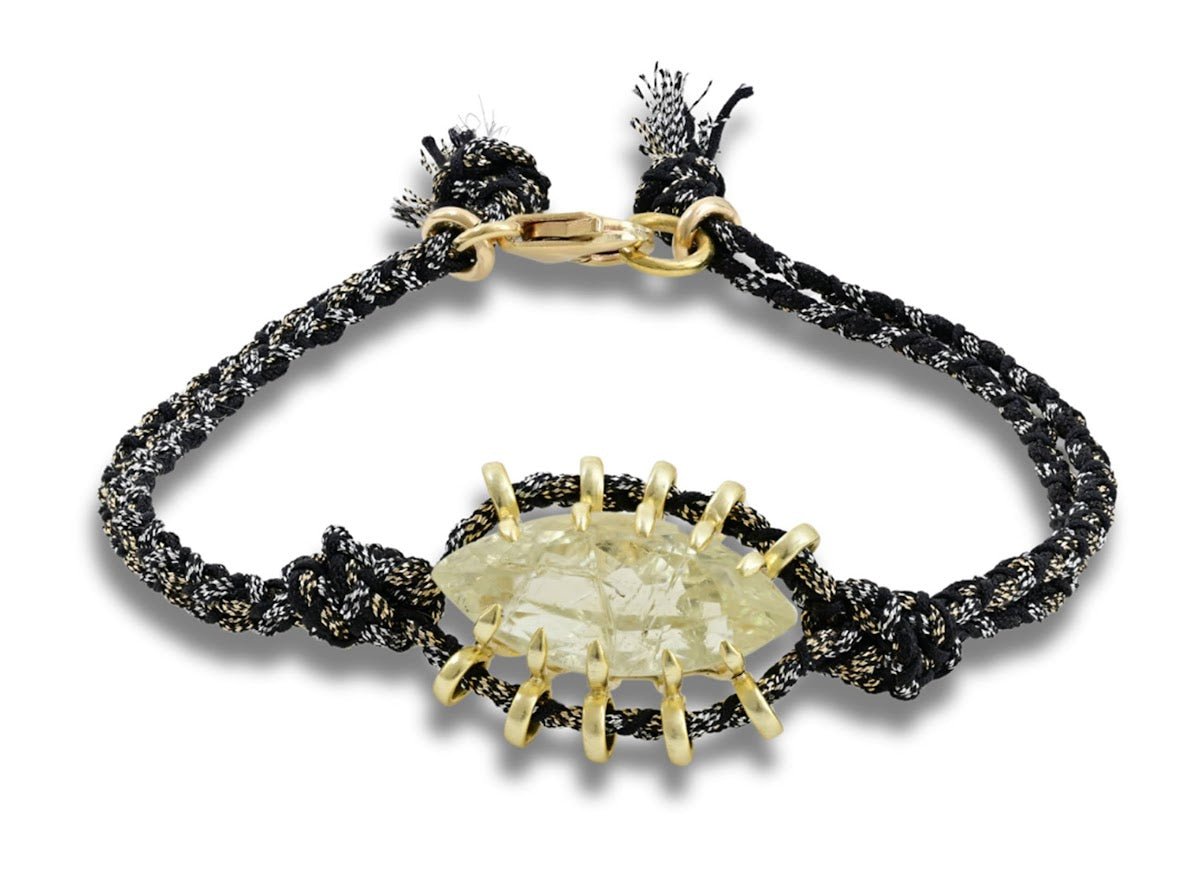 10K Yellow Aquamarine Evil Eye on Silk Bracelet