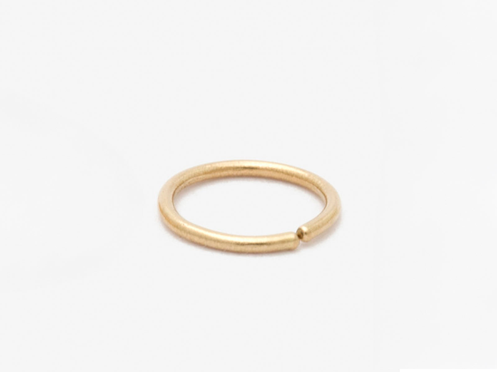 This 14k yellow gold huggie hoop measures 8mm in diameter.