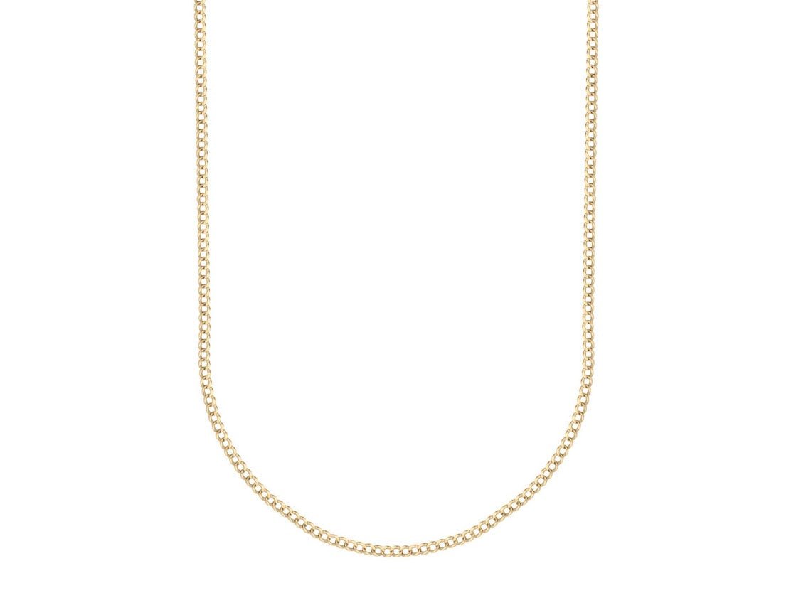 Made of 14k yellow gold, this curb chain is available in 16-inch or 18-inch lengths. Perfect alone or with charms. Hypoallergenic. Lead and nickel free.
