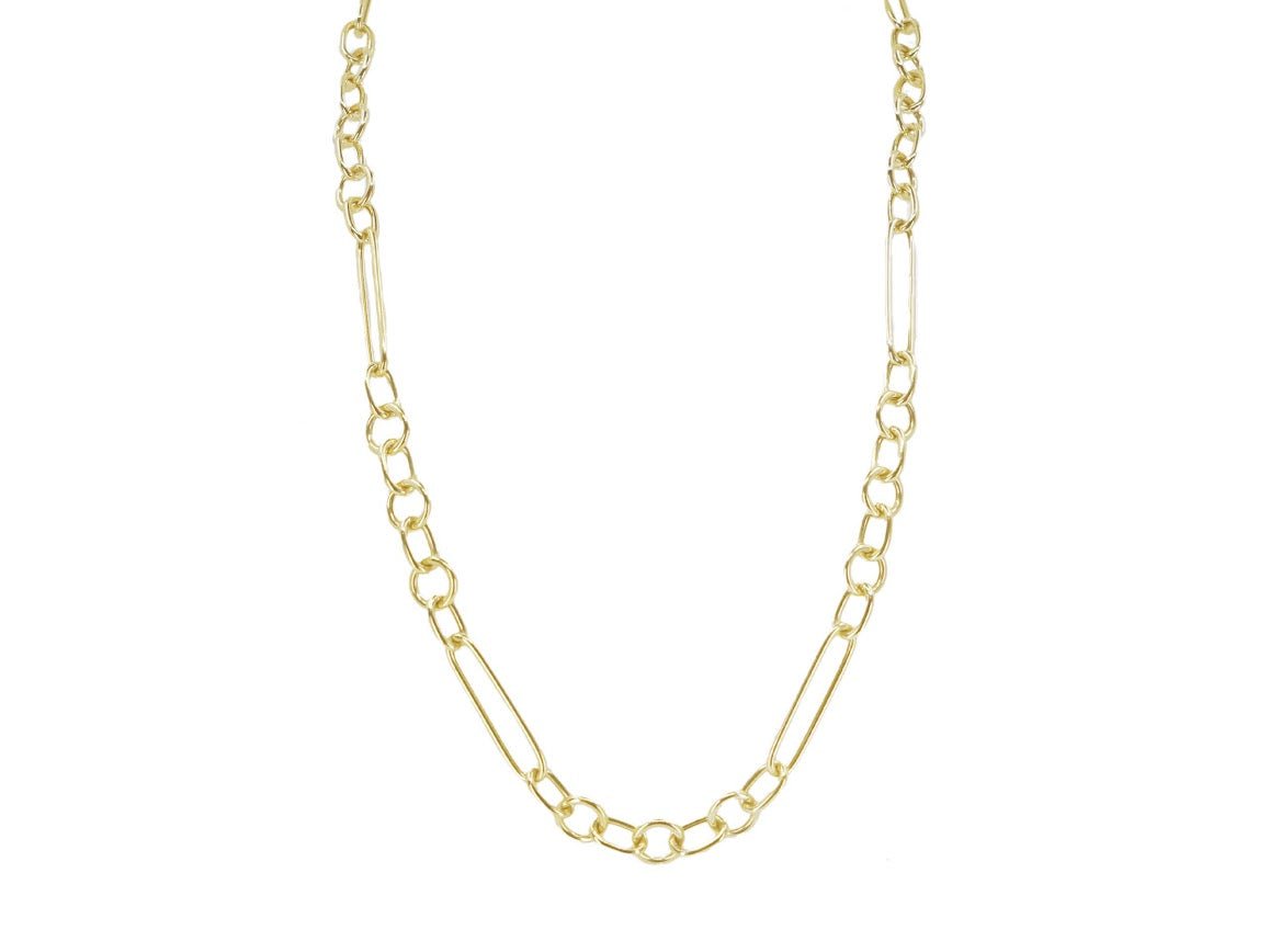 A 14k yellow gold multi link chain with a lobster clasp. 18 inches long.