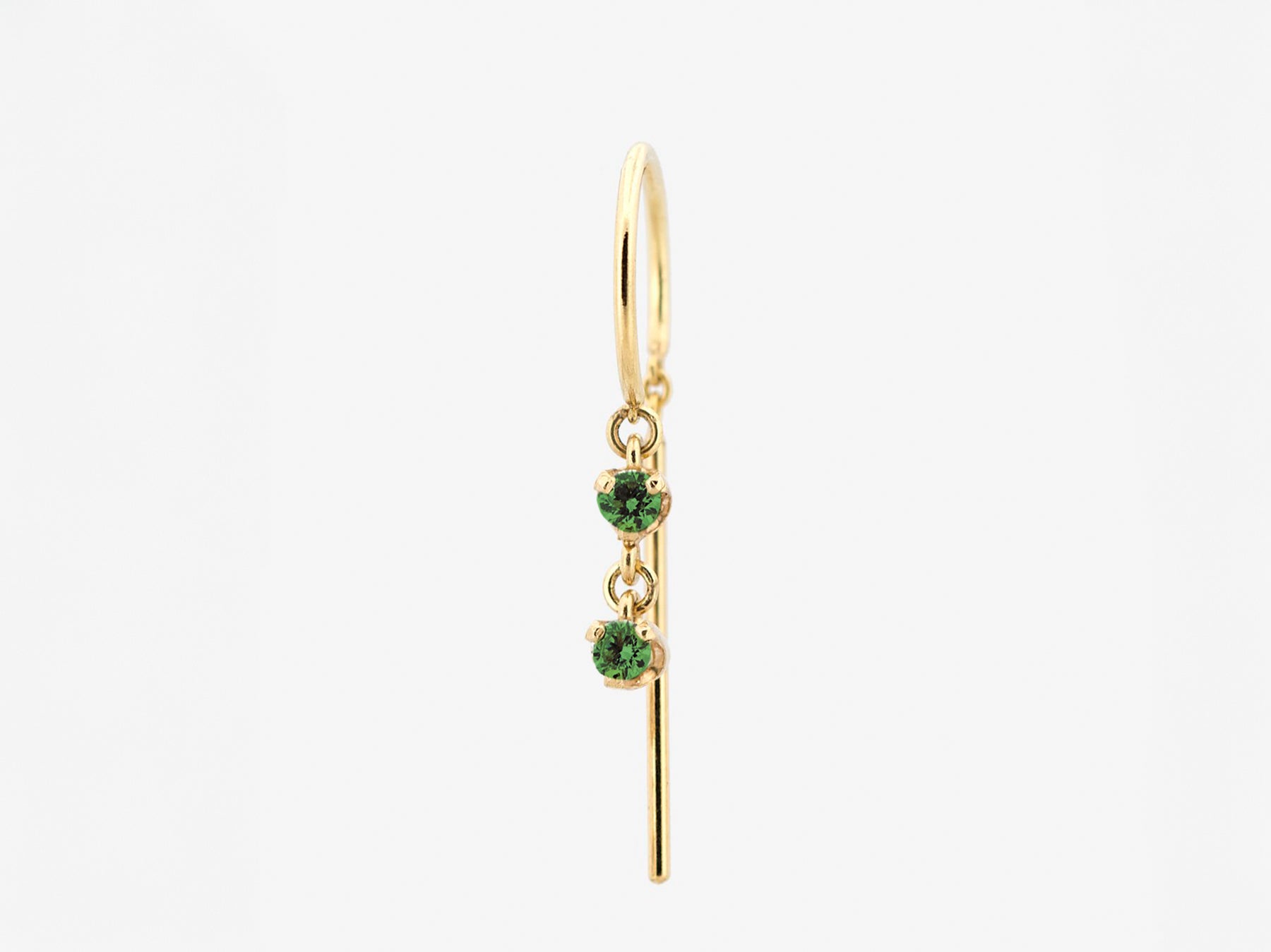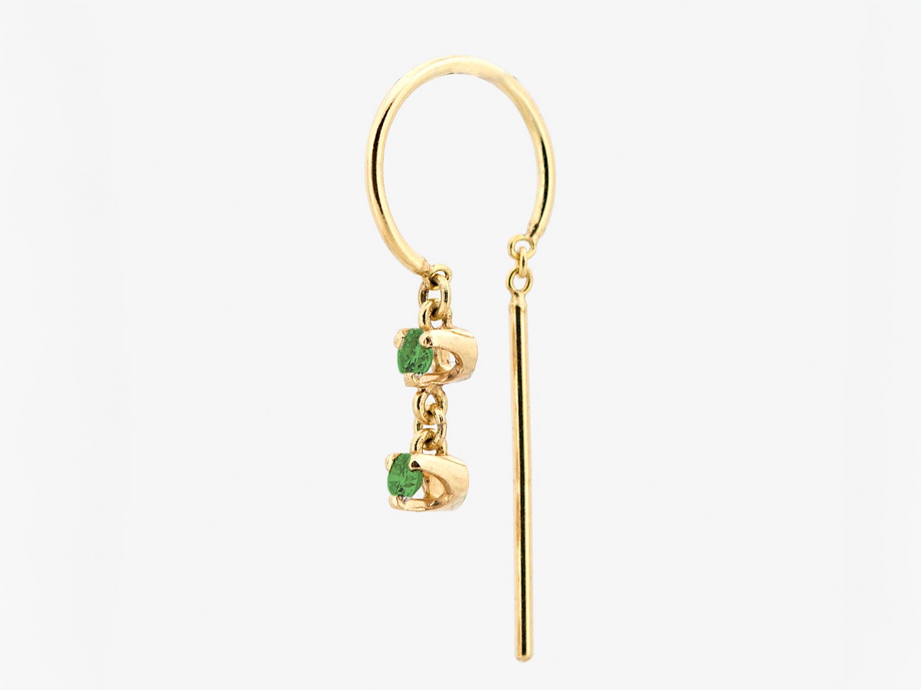 14k Threader-Style Hoop with Long Dangler and 2 Emeralds