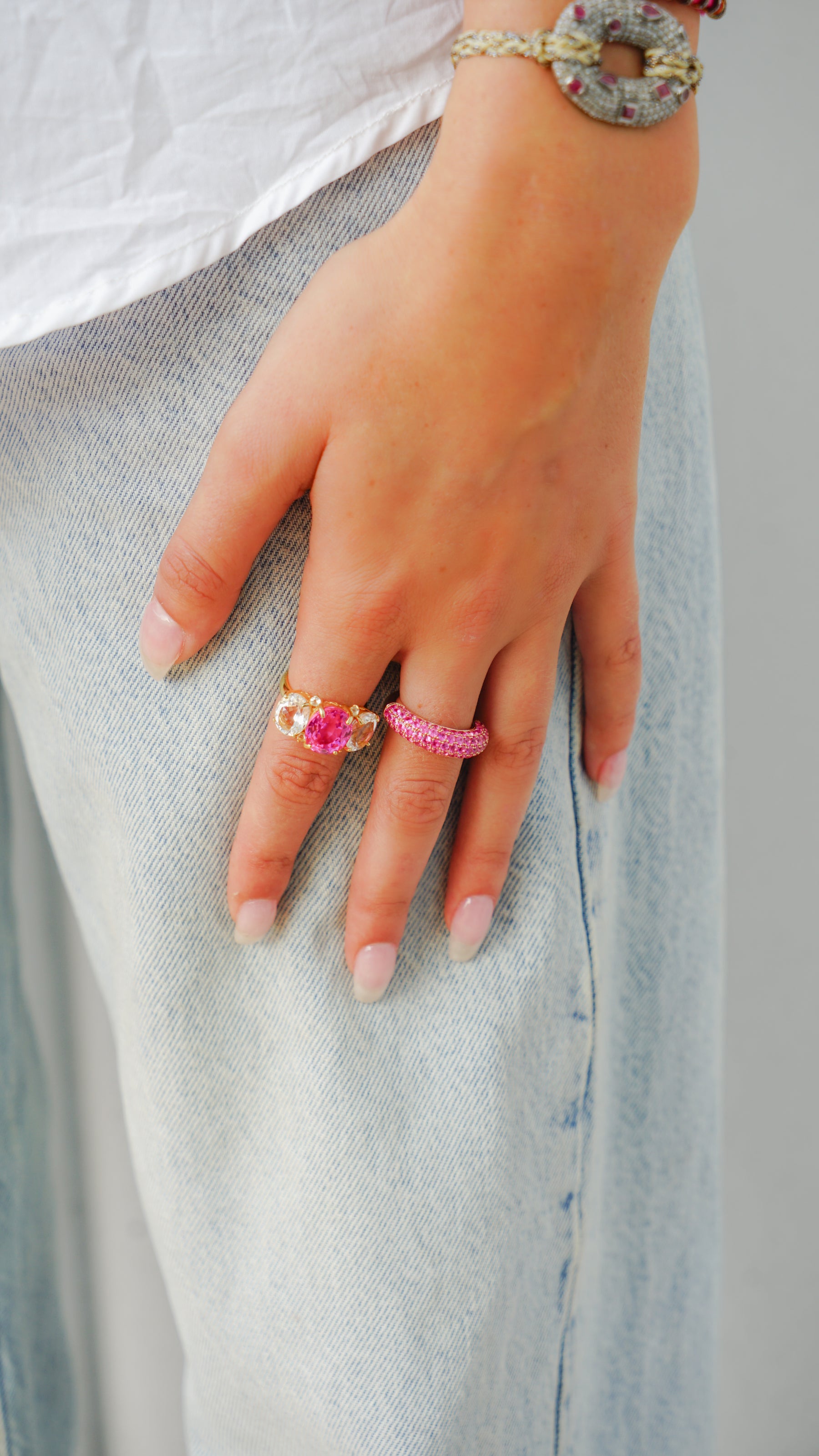 This 14k yellow gold ring features 2.25cts of light pink sapphires and is a size 7.