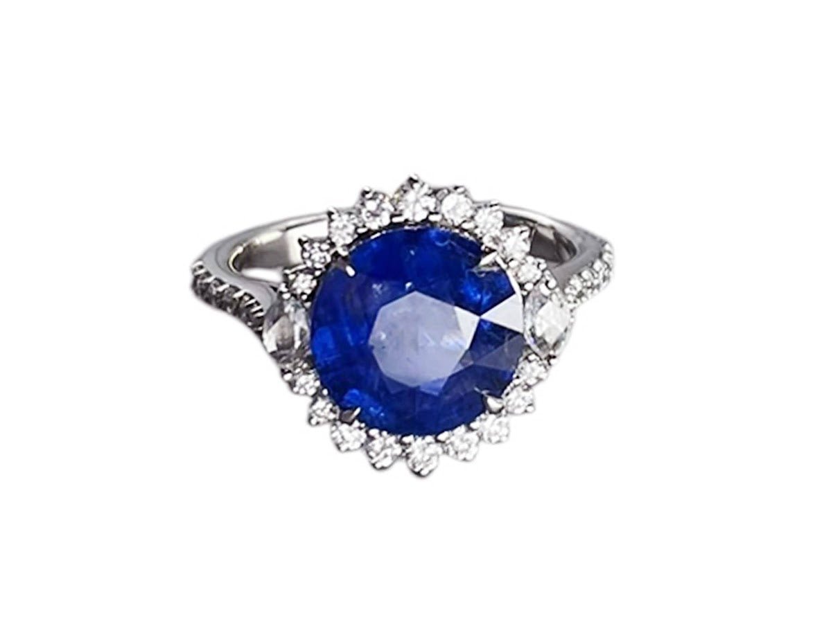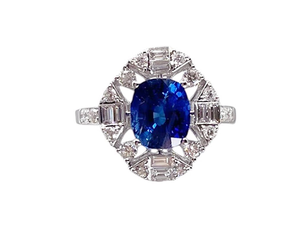 18k Ceylon Sapphire Ring with Diamonds